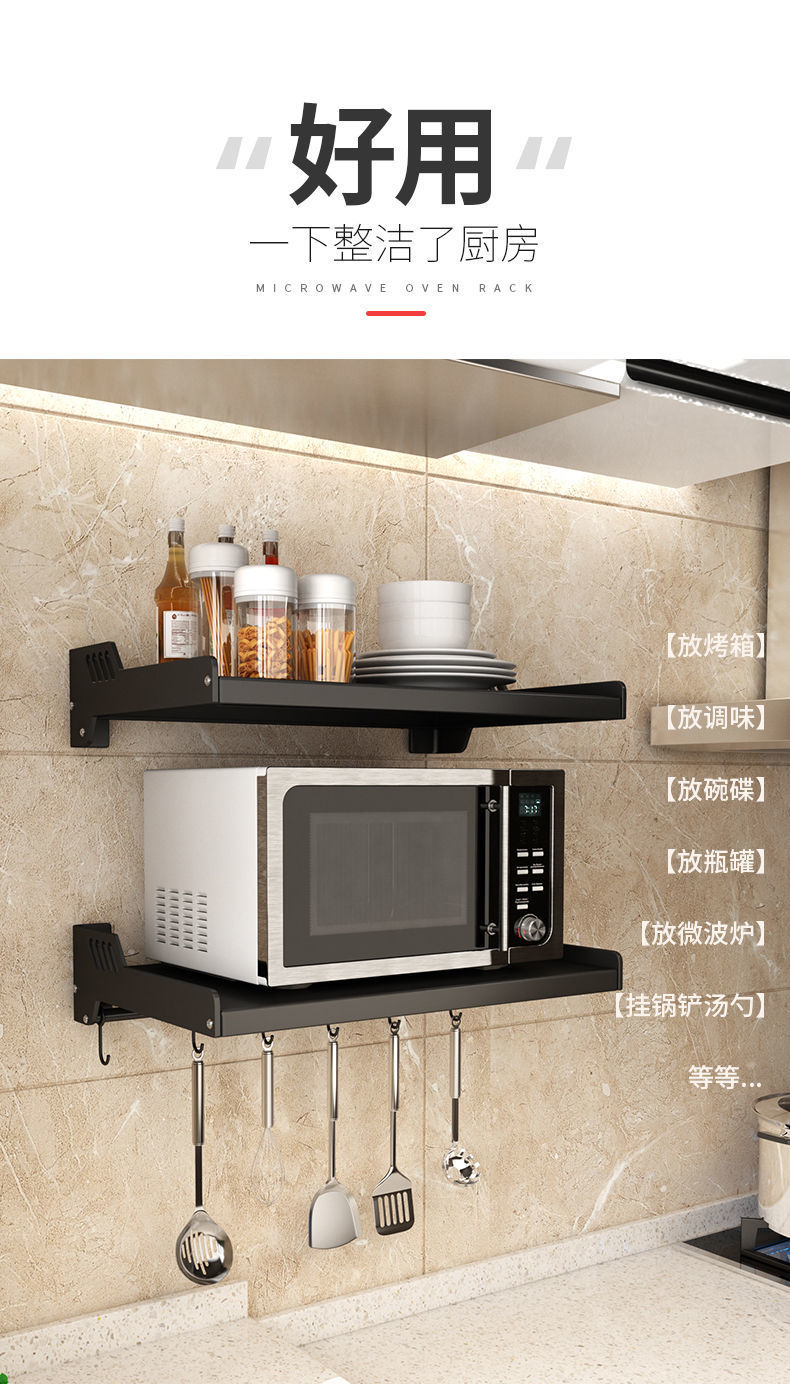 - Microwave oven rack 49CM + hook hanging rod [punch version]]