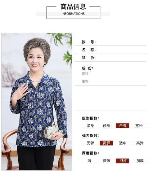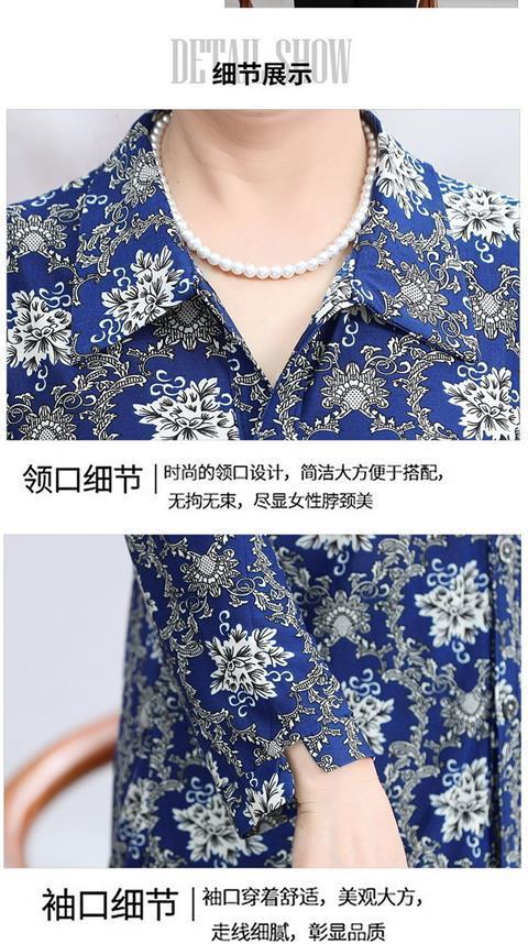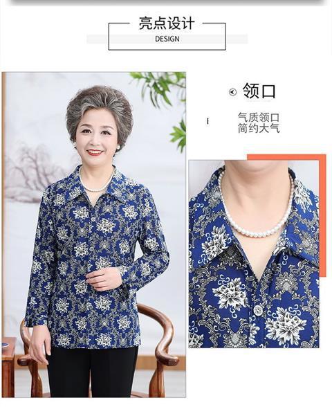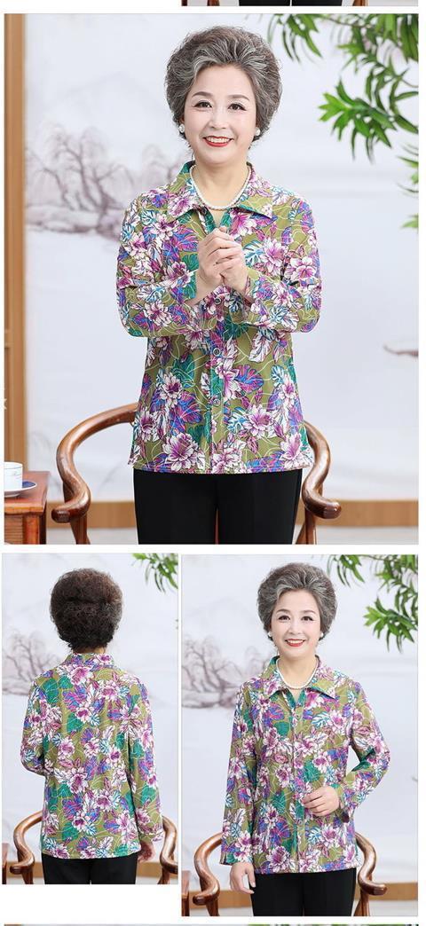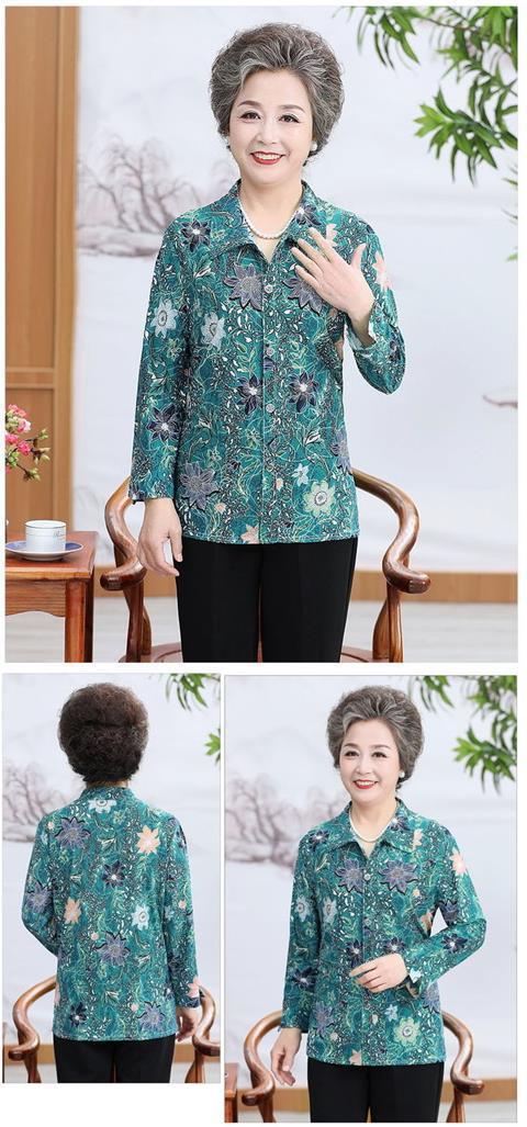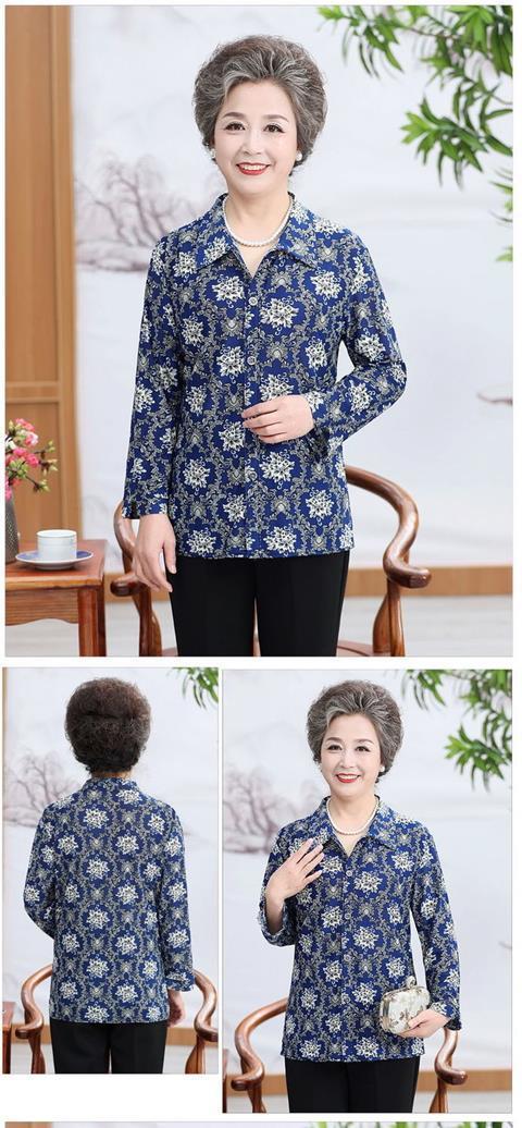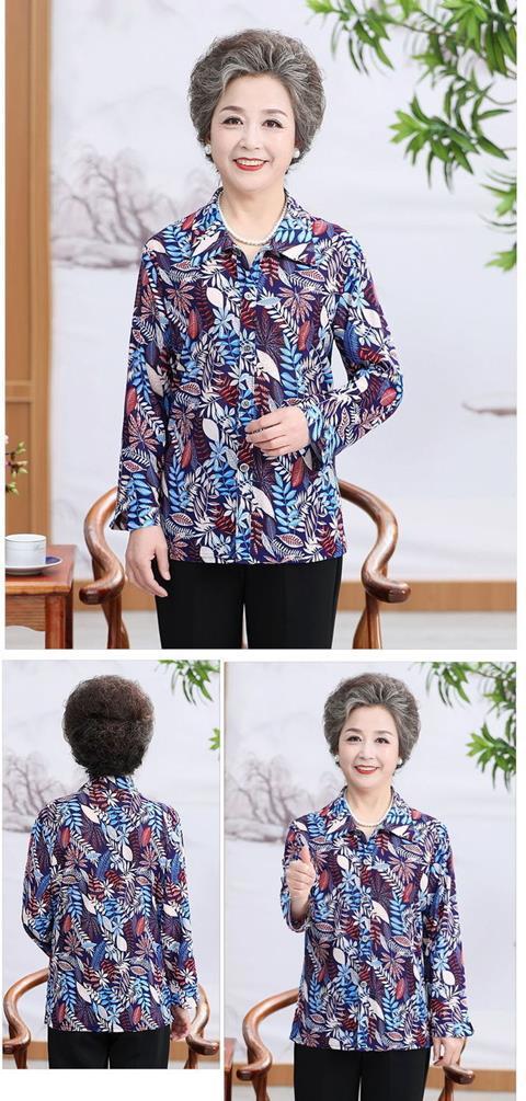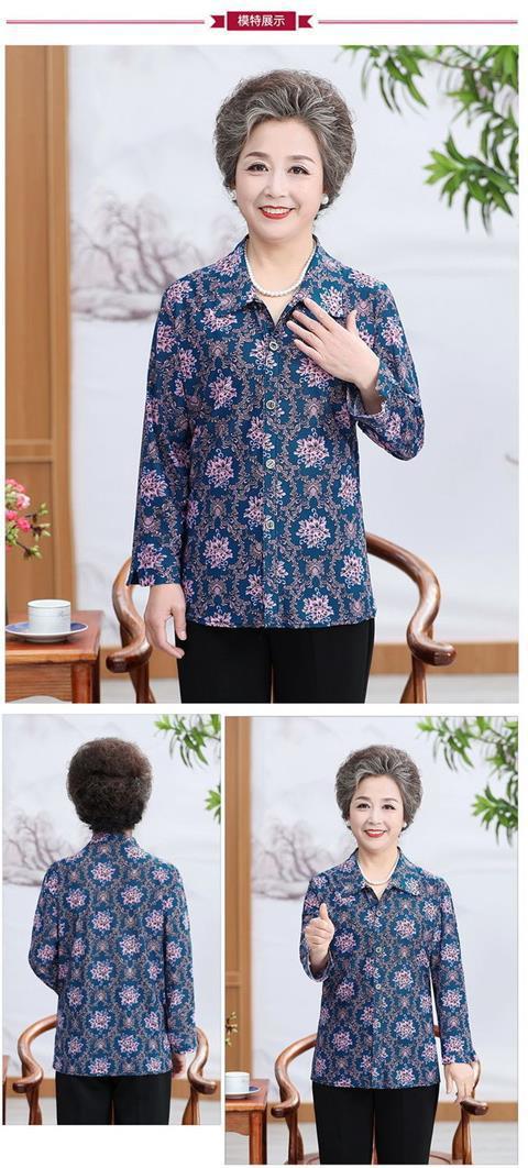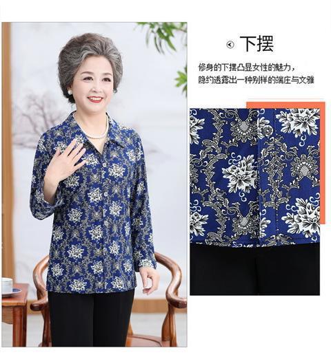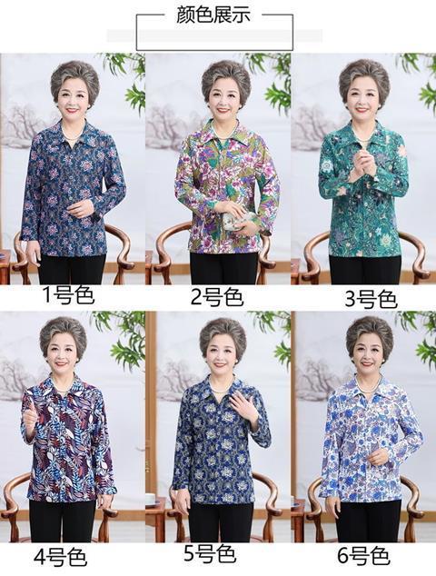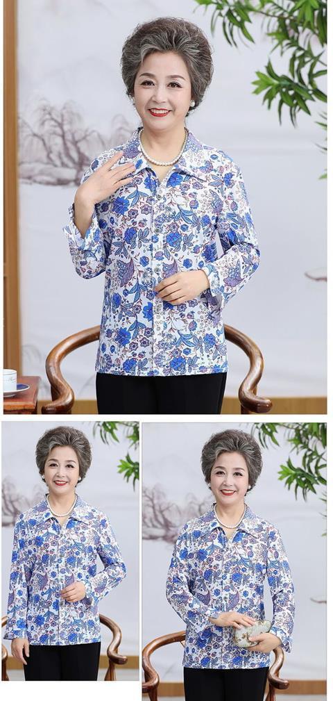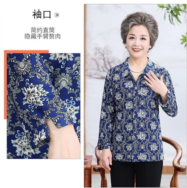 Middle aged Spring and Autumn Shirt Women s Long sleeved Grandma s Lapel Ice Silk Shirt Old Lady s Mother s Loose Top