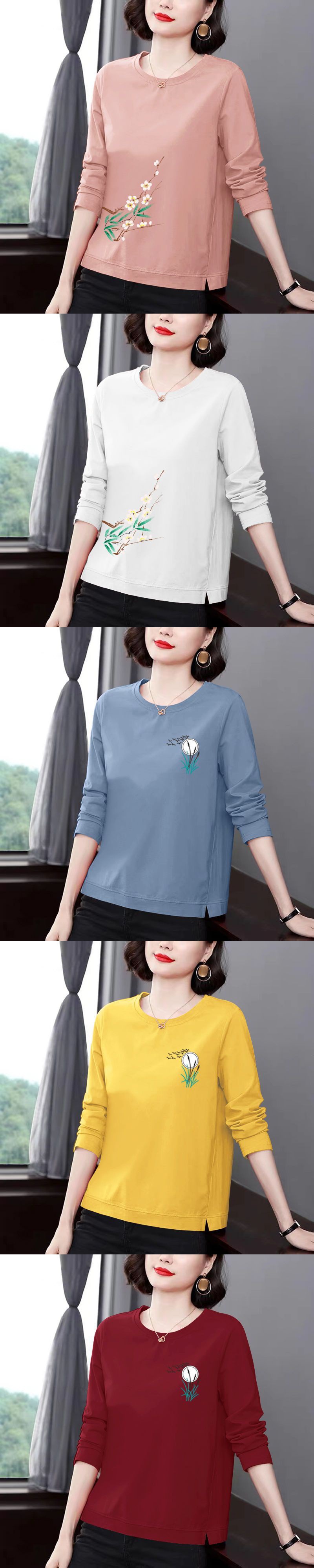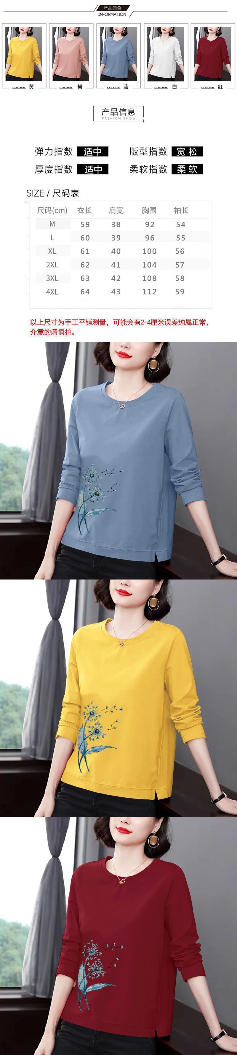 Middle aged women s long sleeved cotton plus size shirt Spring and Autumn New loose belly covering fashion mom s bottoming shirt manufacturer