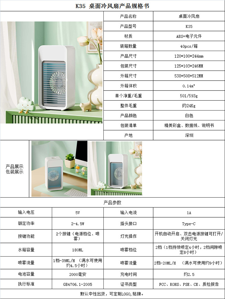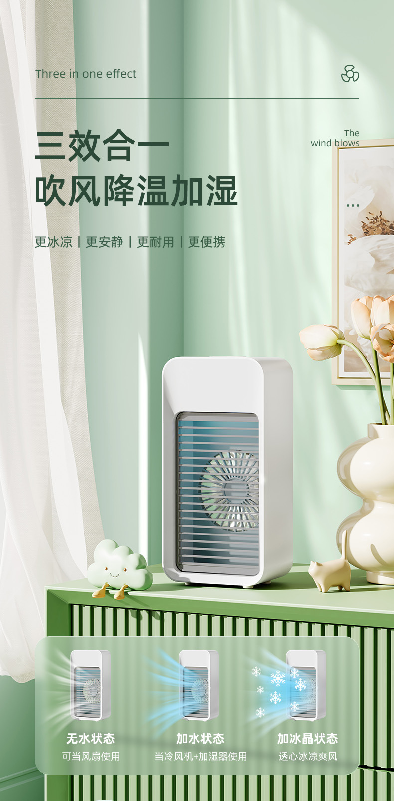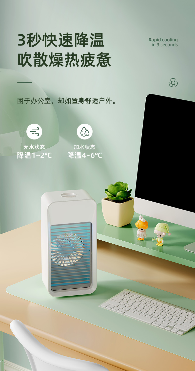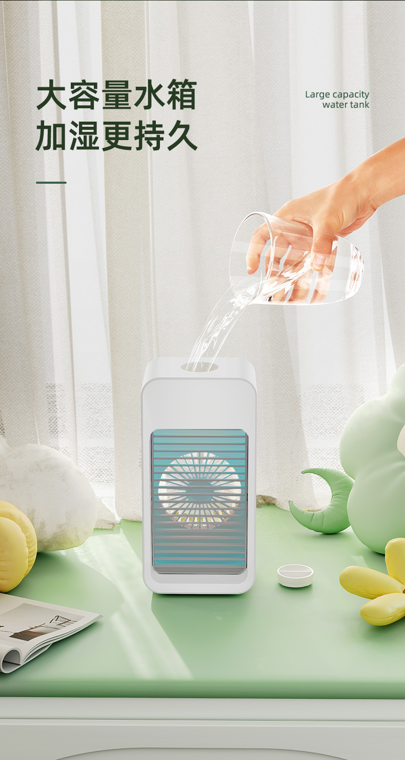 Mini air conditioning fan small fan USB rechargeable portable spray humidifier water cooling fan desktop 2024 new