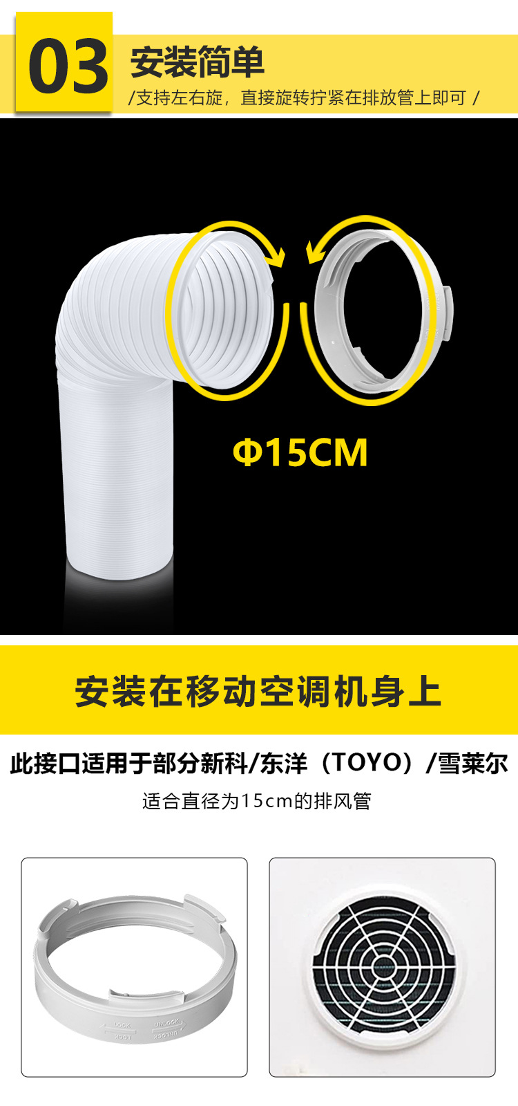 Mobile air conditioning Accessories exhaust pipe exhaust pipe 15cm round interface for Xinke body interface factory wholesale