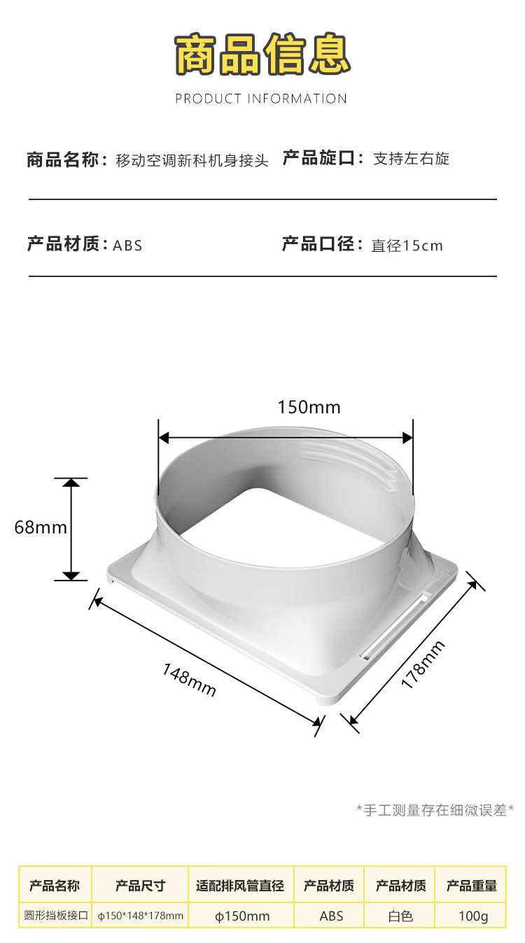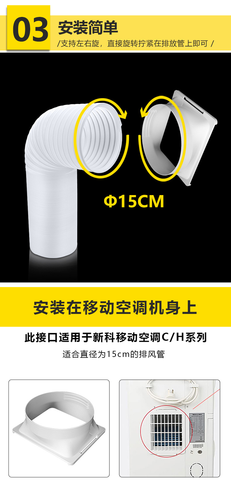 Mobile air conditioning Accessories exhaust pipe exhaust pipe 15cm square interface for Xinke body interface factory wholesale