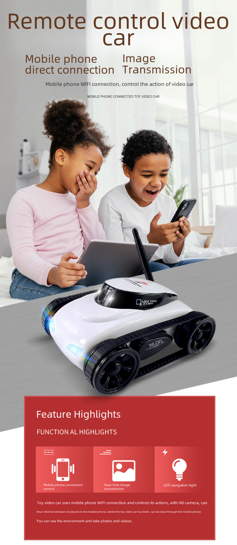 Mobile phone gravity remote control video car Photo Picture video transmission track tank car camera lifting toys
