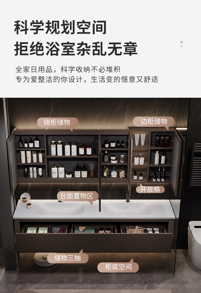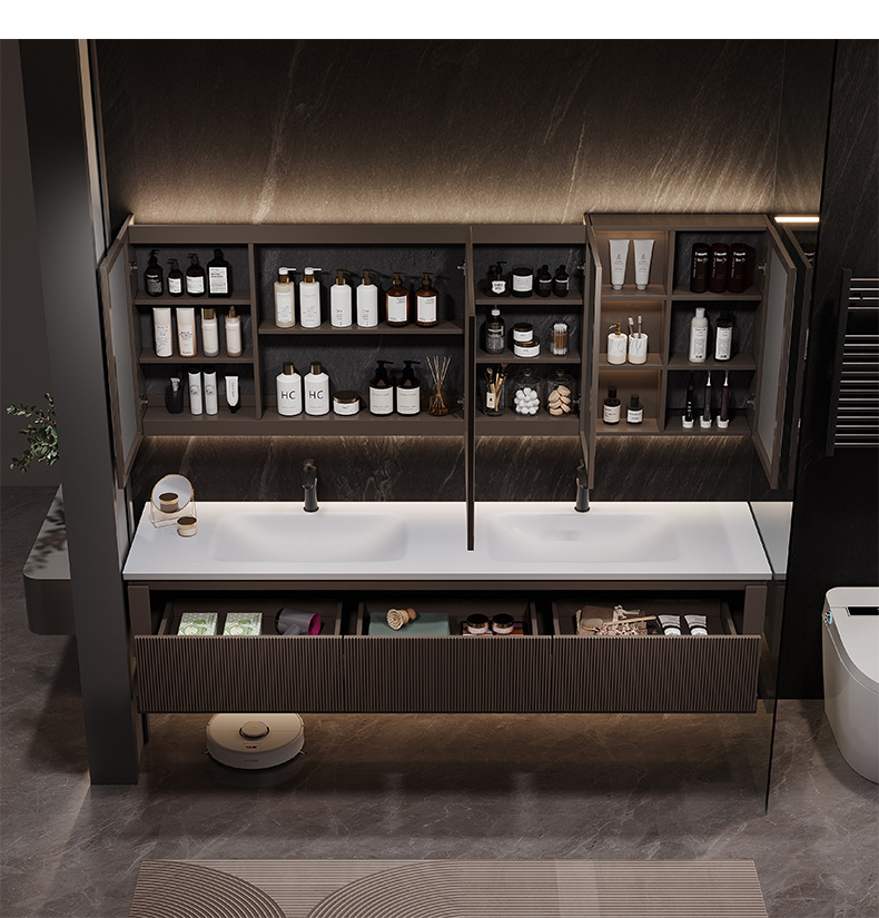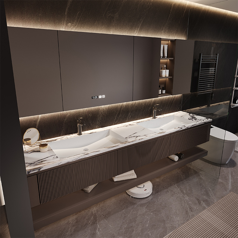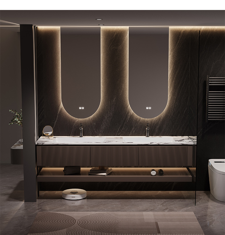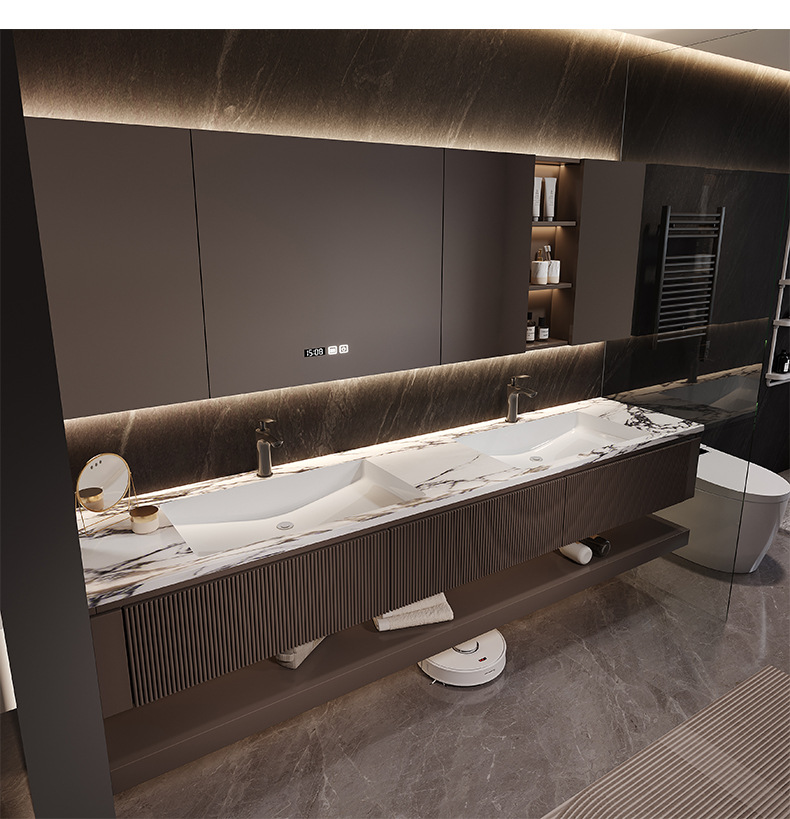 Modern Light Luxury Intelligent Bathroom Cabinet Kolinai Integrated Double Basin Bathroom Wash Table Wash Basin Combination