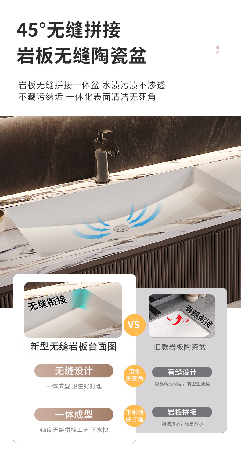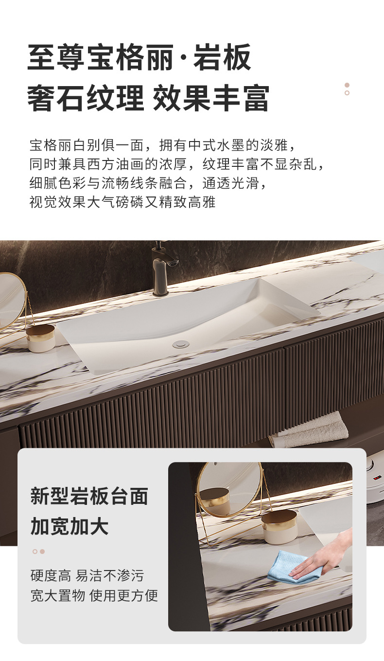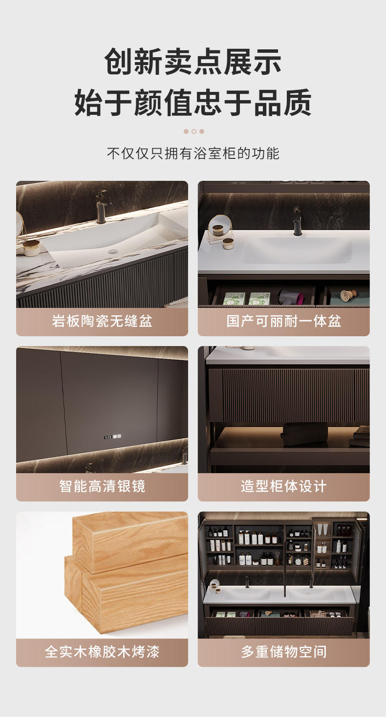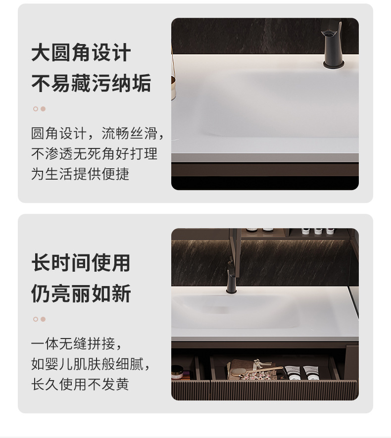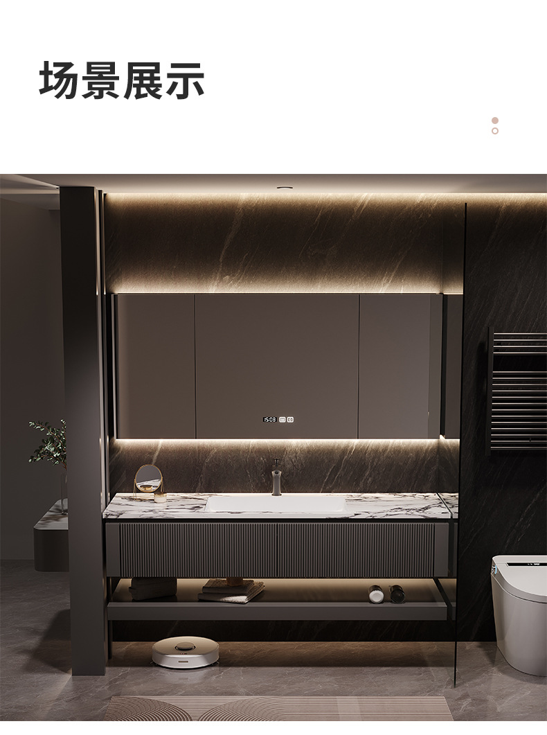 - 80cm intelligent mirror cabinet rock plate seamless ceramic basin
