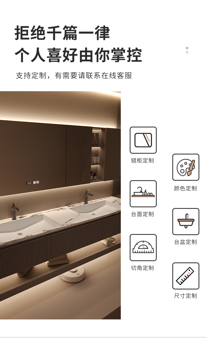 - 130cm intelligent mirror cabinet rock plate seamless ceramic basin