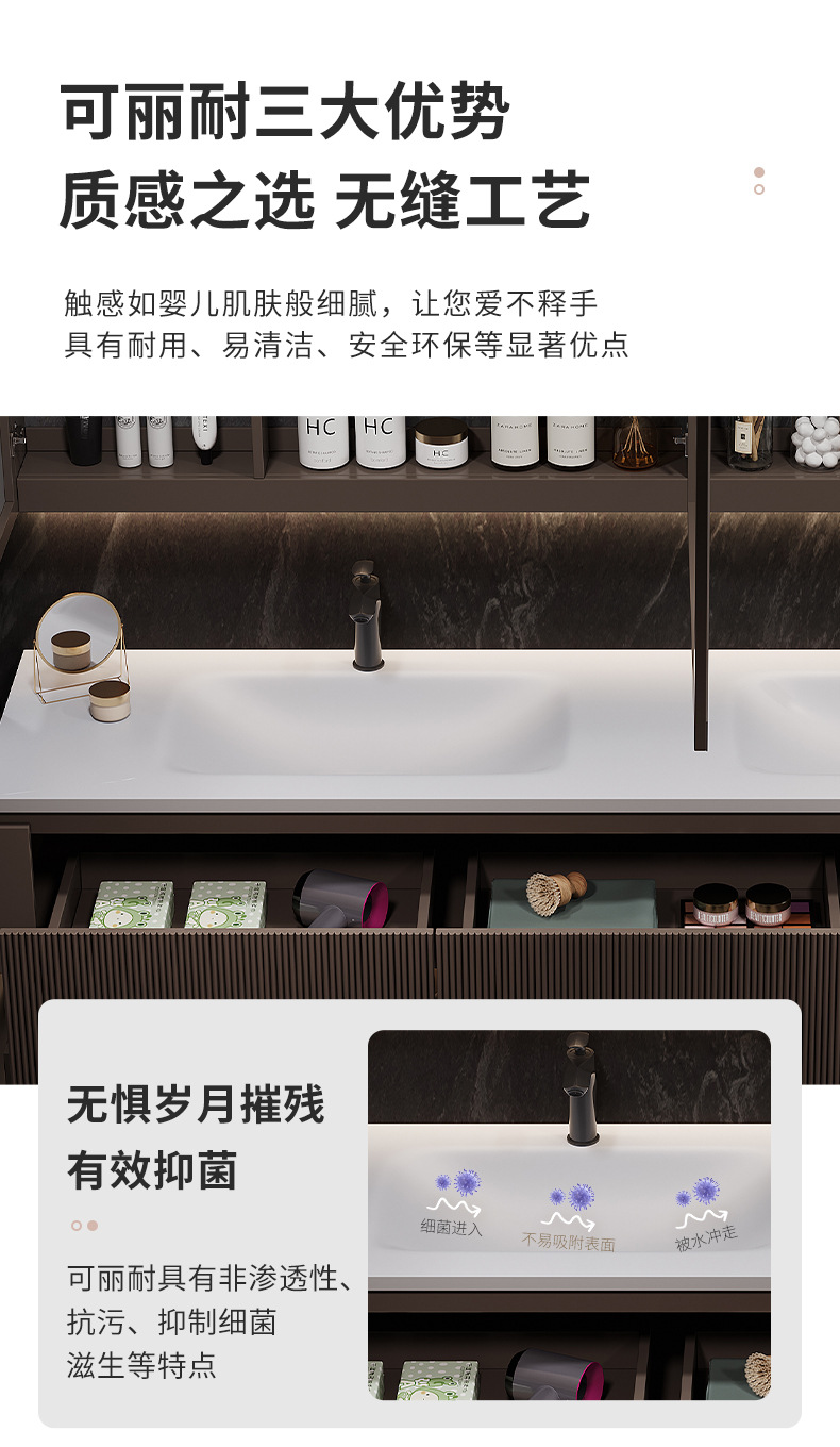 - 80cm intelligent mirror cabinet domestic Corian one-piece basin domestic Corian one-piece basin