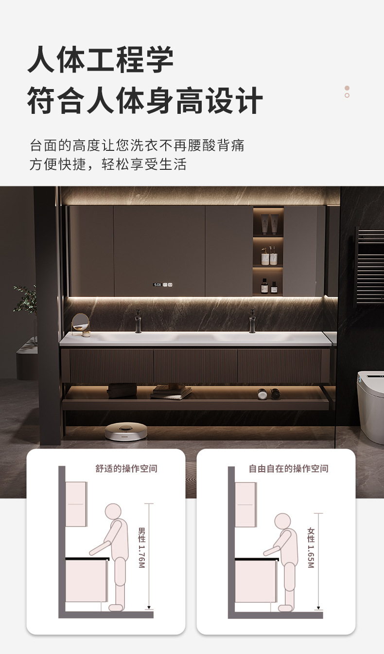 - 170cm intelligent mirror cabinet rock plate seamless ceramic basin