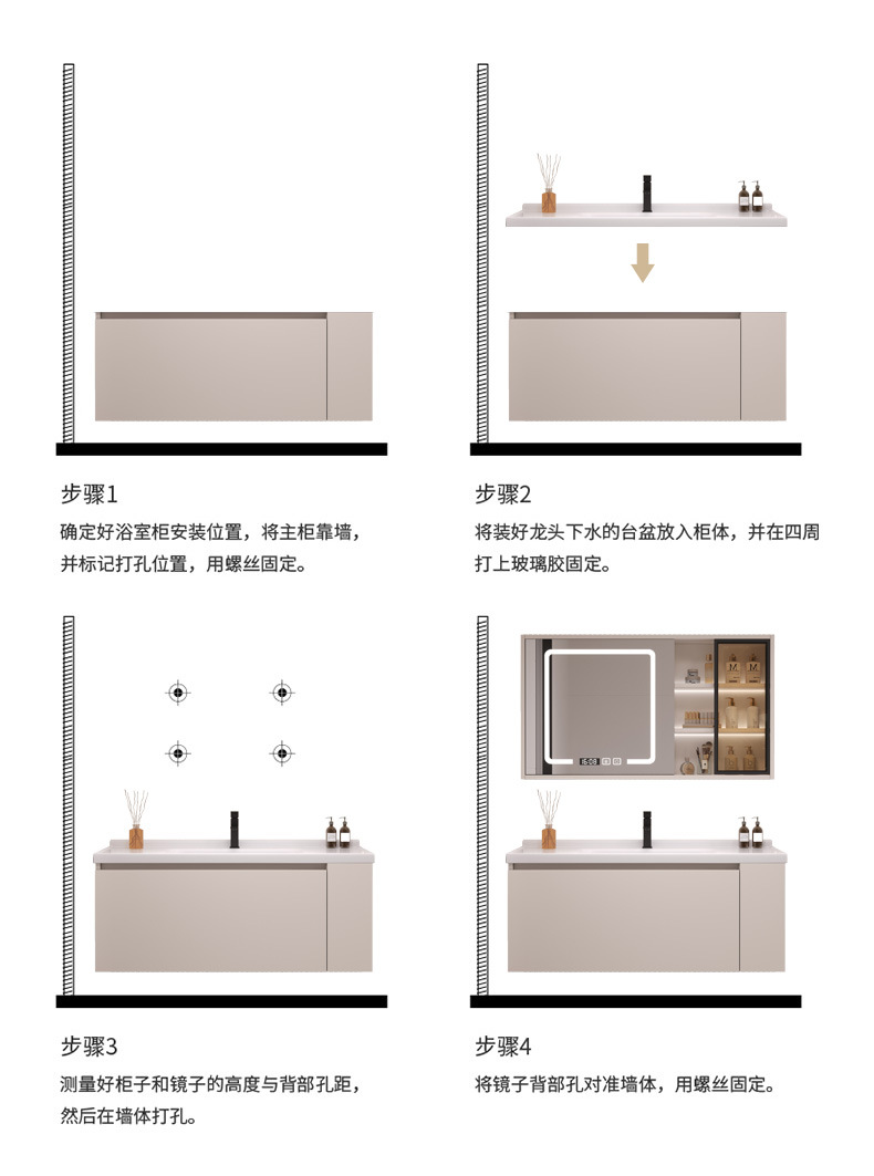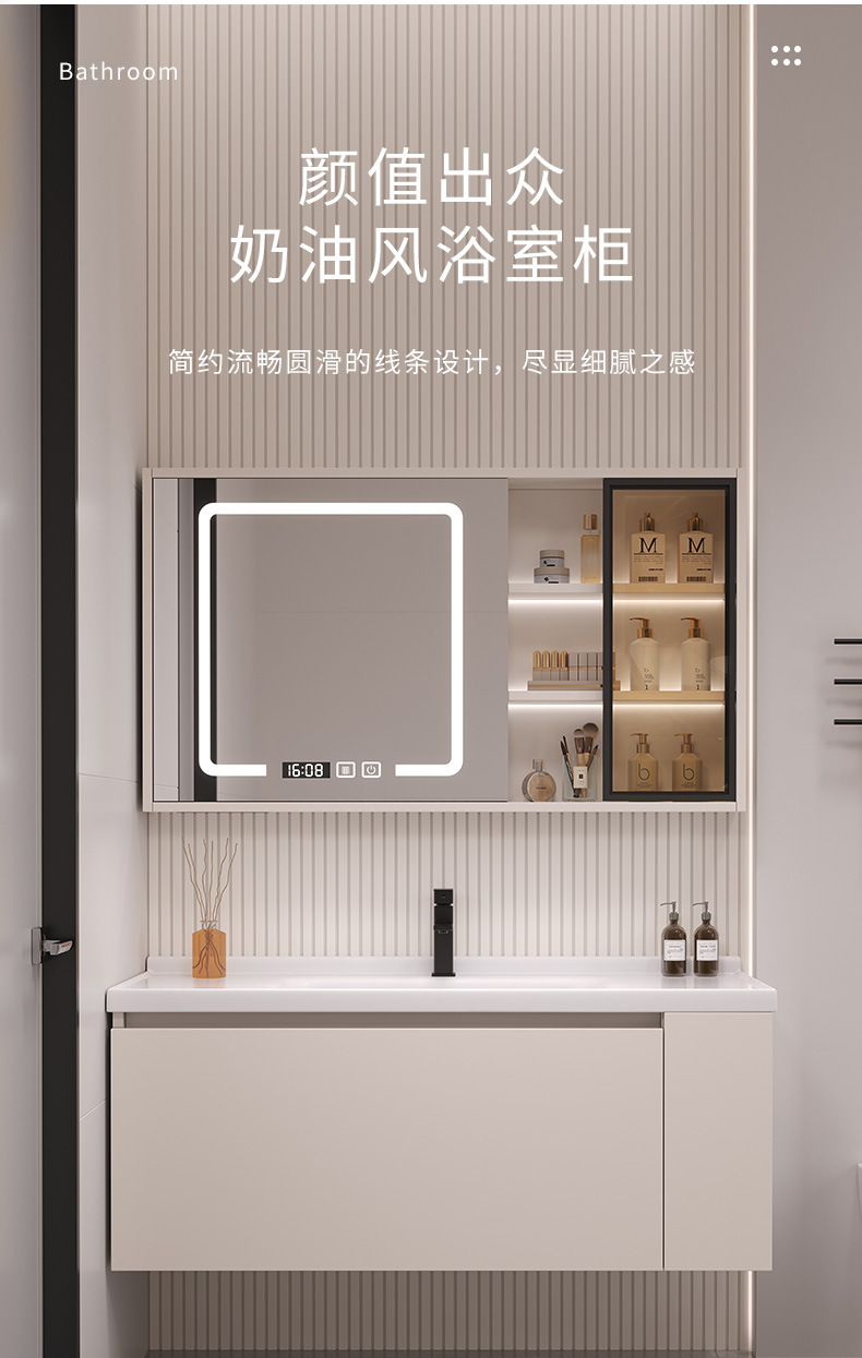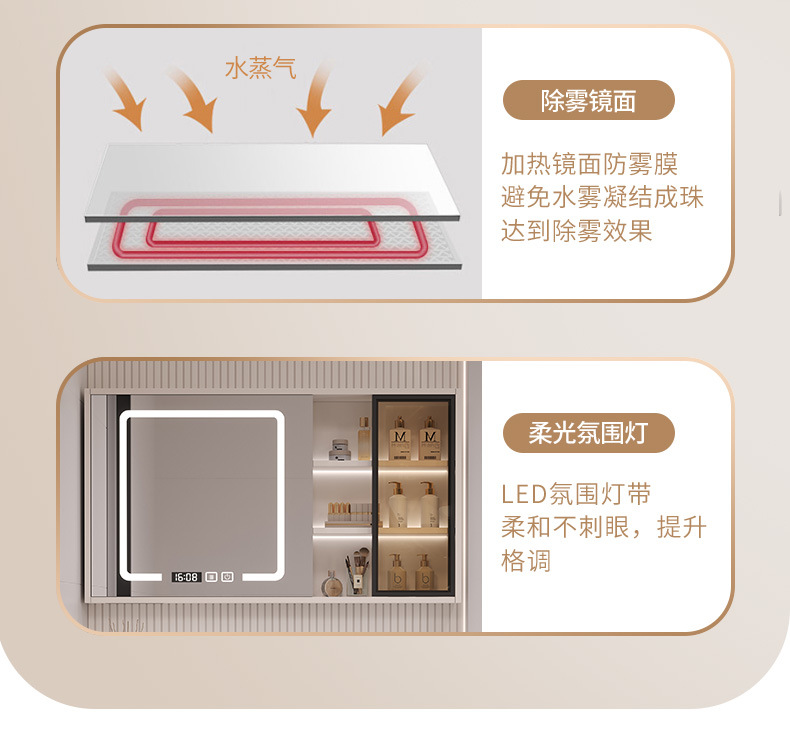 - 100 cream color glass door smart mirror cabinet