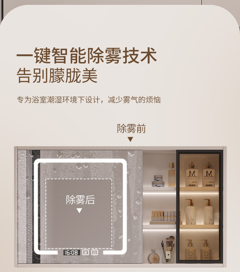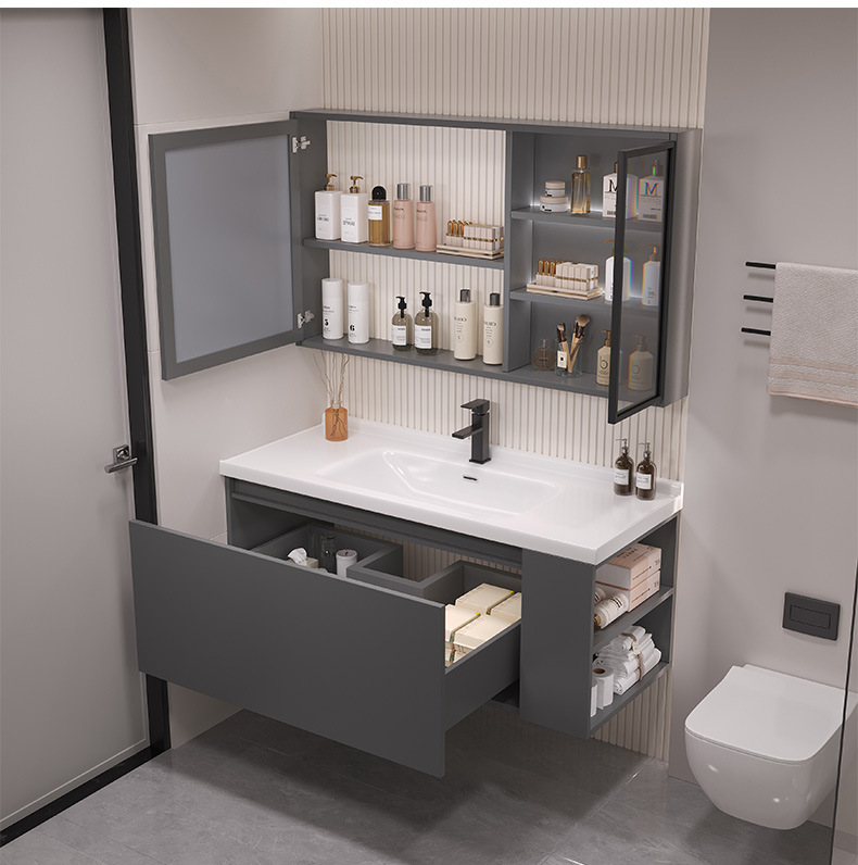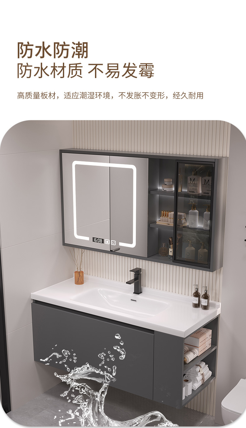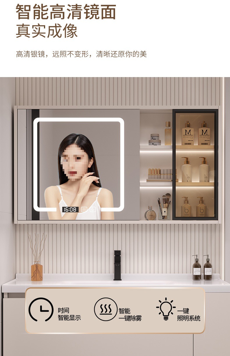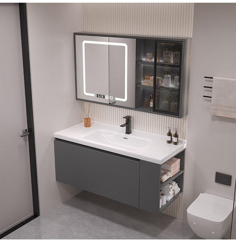 - 80 iron gray glass door intelligent mirror cabinet