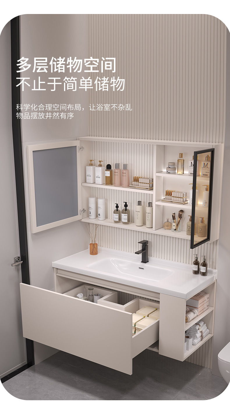 Modern Light Luxury Washbasin Side Cabinet Toilet Wash Table Wash Basin Cabinet Combination Bathroom Cabinet Ceramic All in One Basin