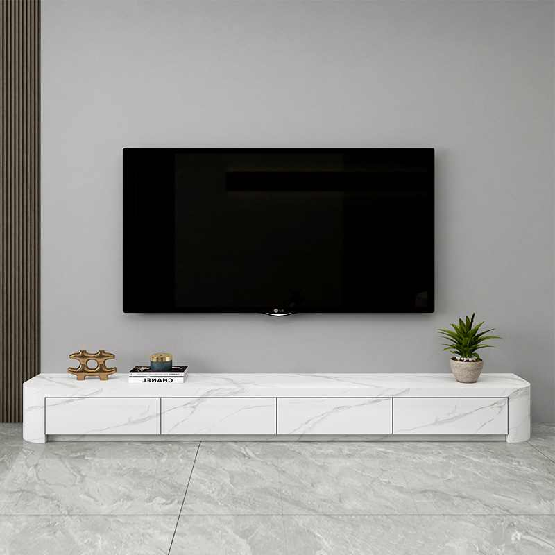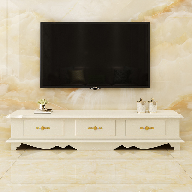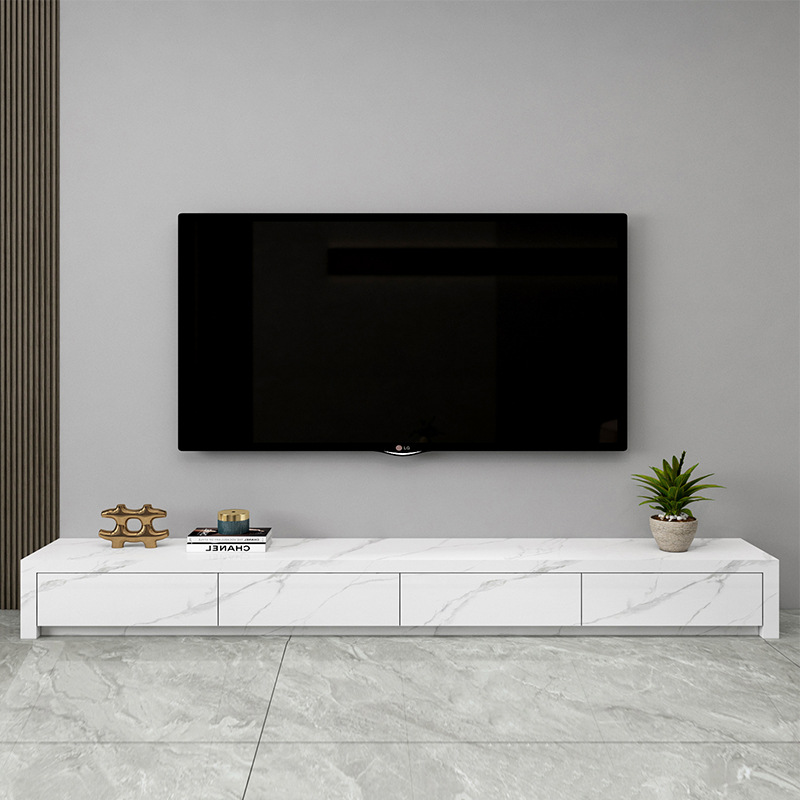 Modern Simple Rock Board TV Cabinet Integrated Solid Wood Floor Cabinet with Drawer Living Room Background Wall Floor Platform Light Luxury Fish belly White