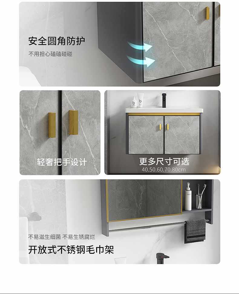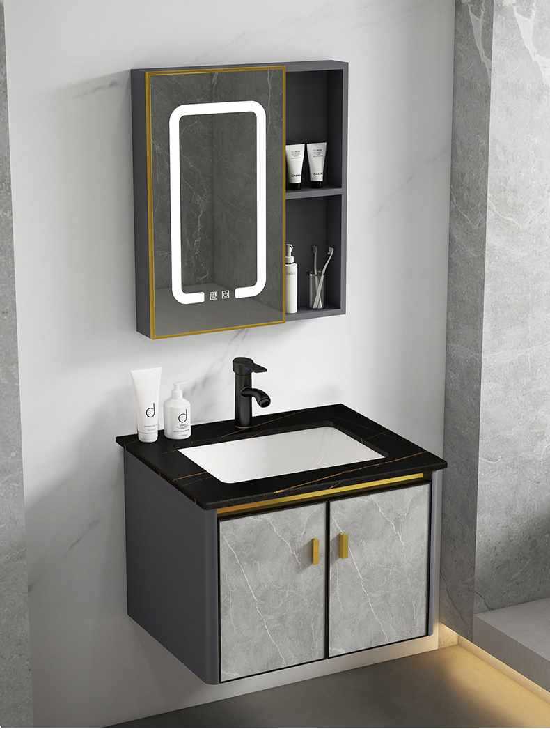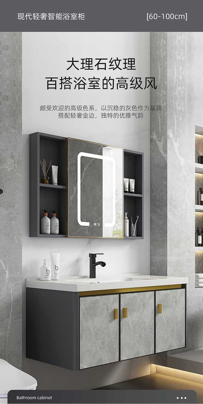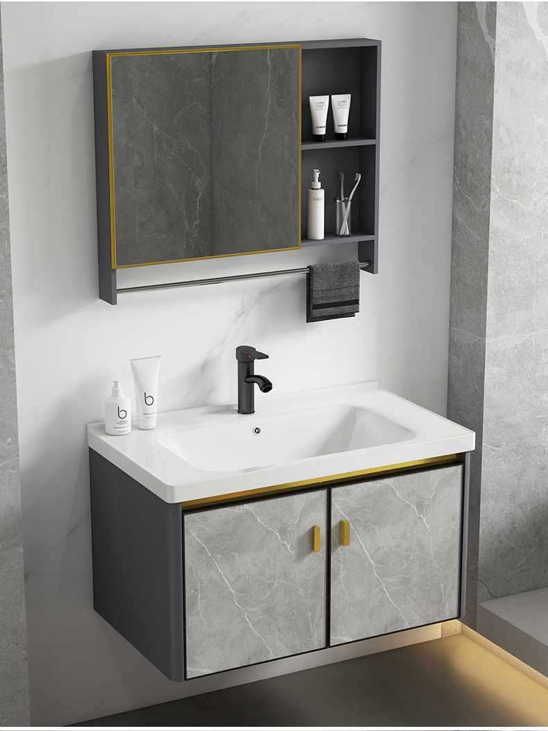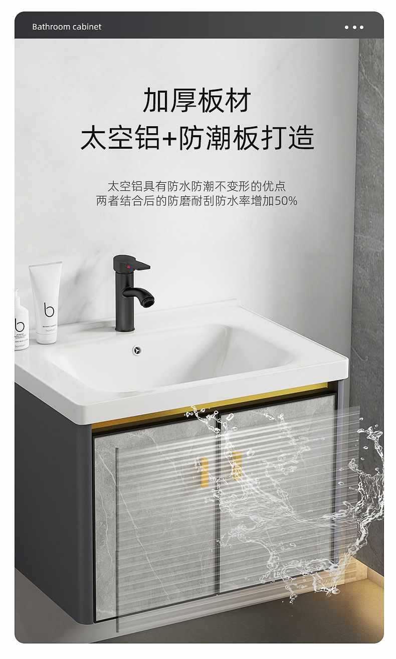Modern minimalist ceramic integrated basin bathroom cabinet space aluminum wash basin combination wash basin bathroom cabinet