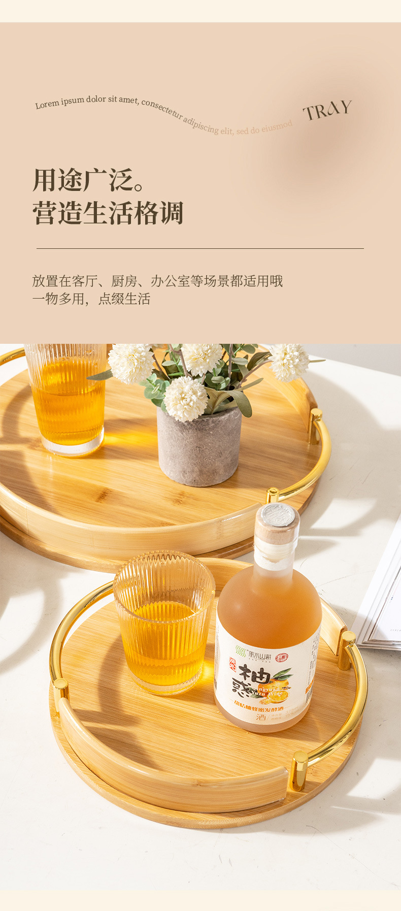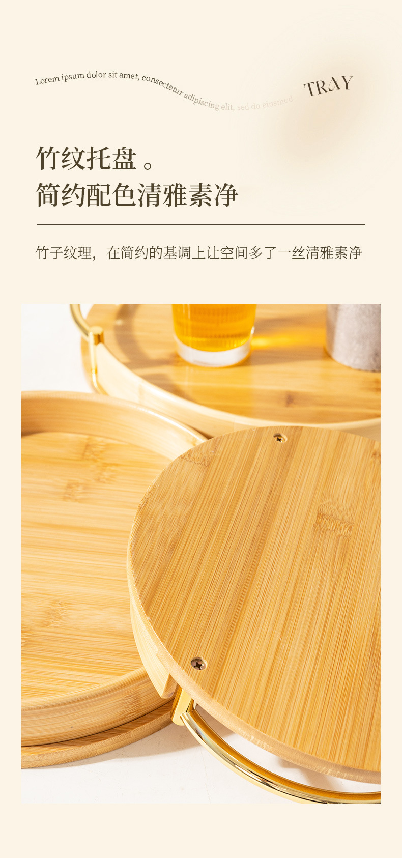 Modern simple bamboo round tray household restaurant tea set small tray Pastry Plate handle fruit plate wholesale