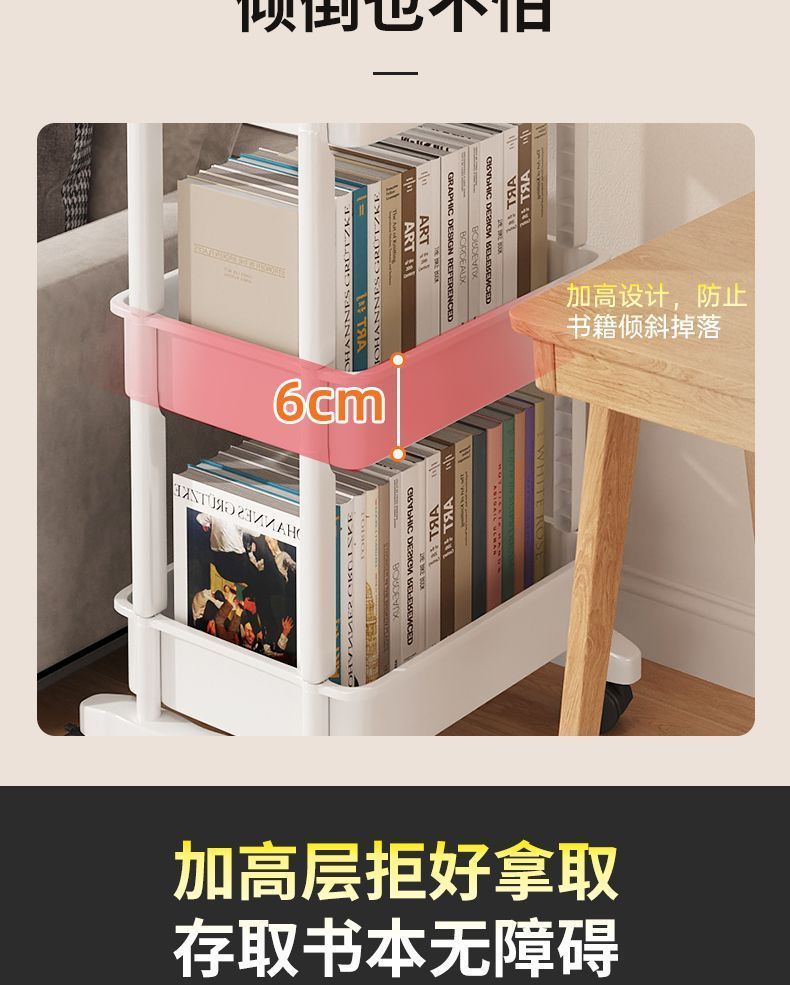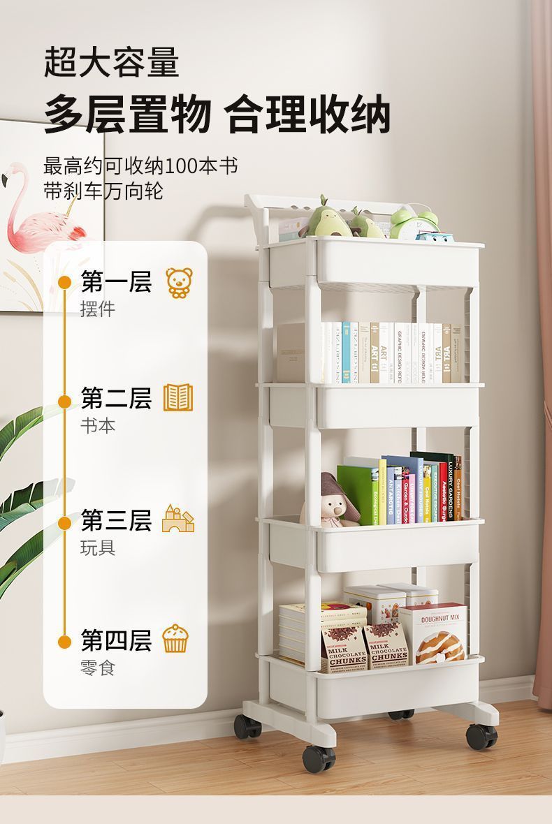 Movable bookshelf storage rack multi-layer storage rack household trolley simple toy snack storage rack