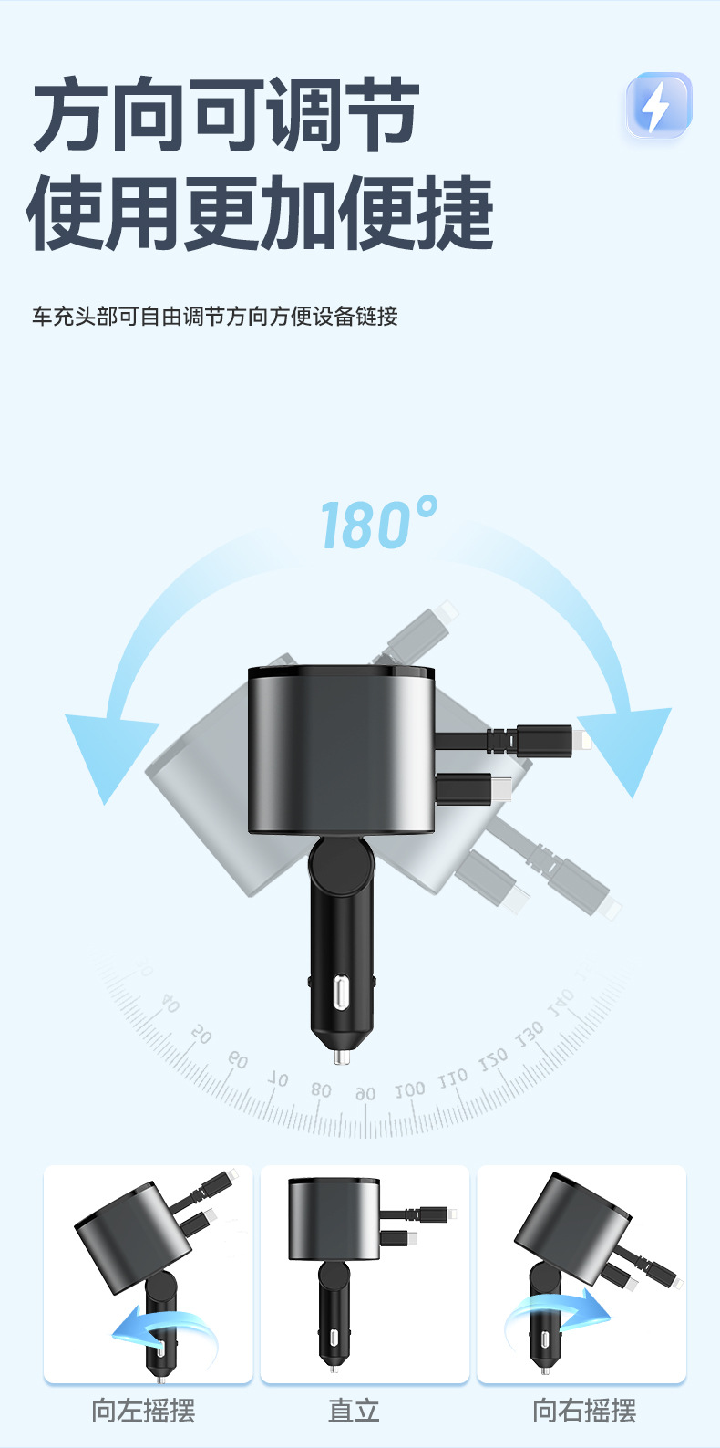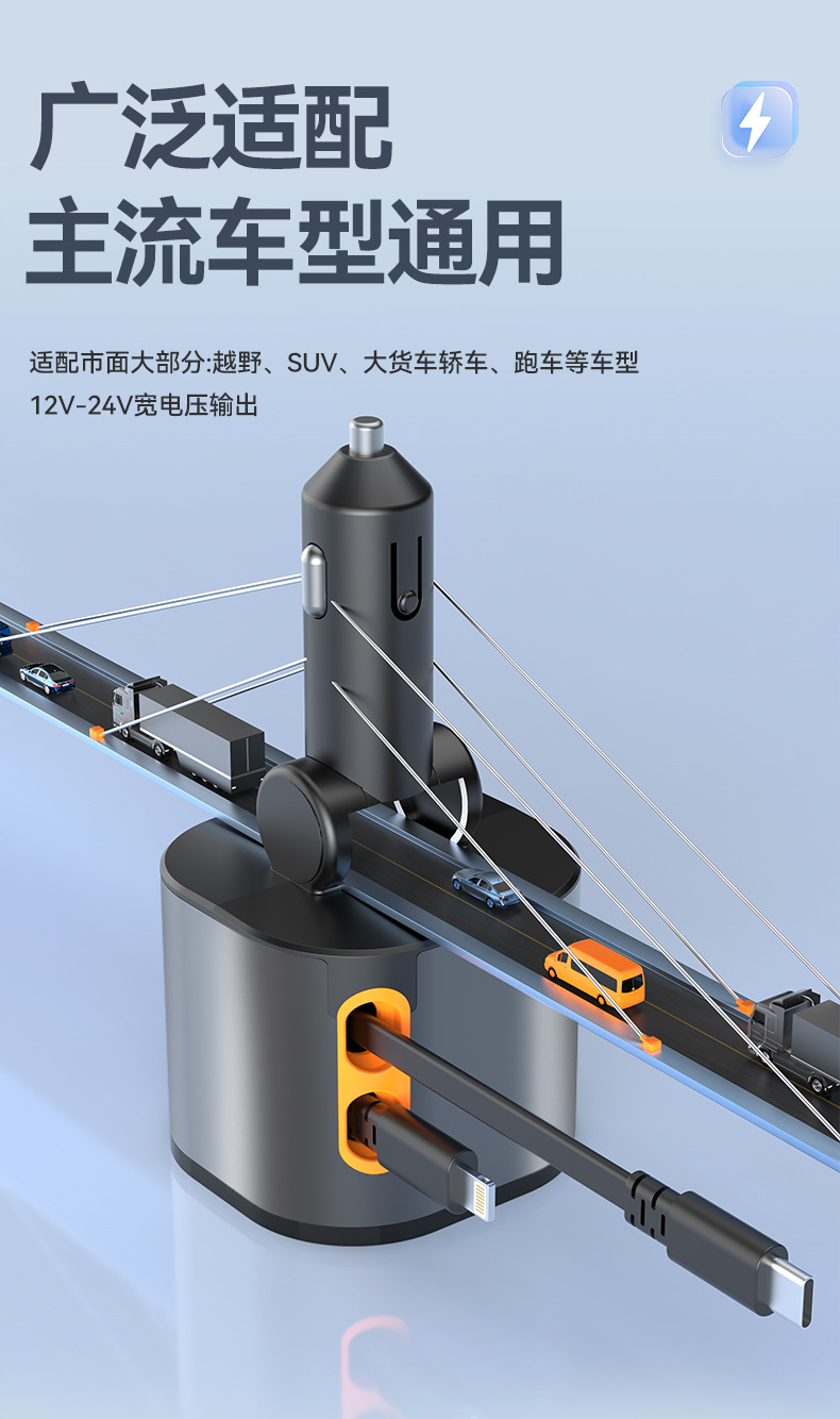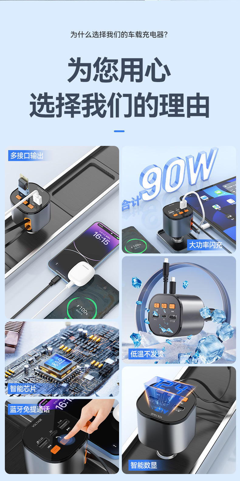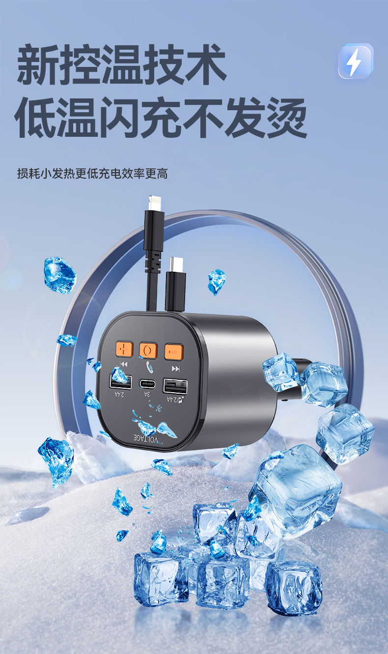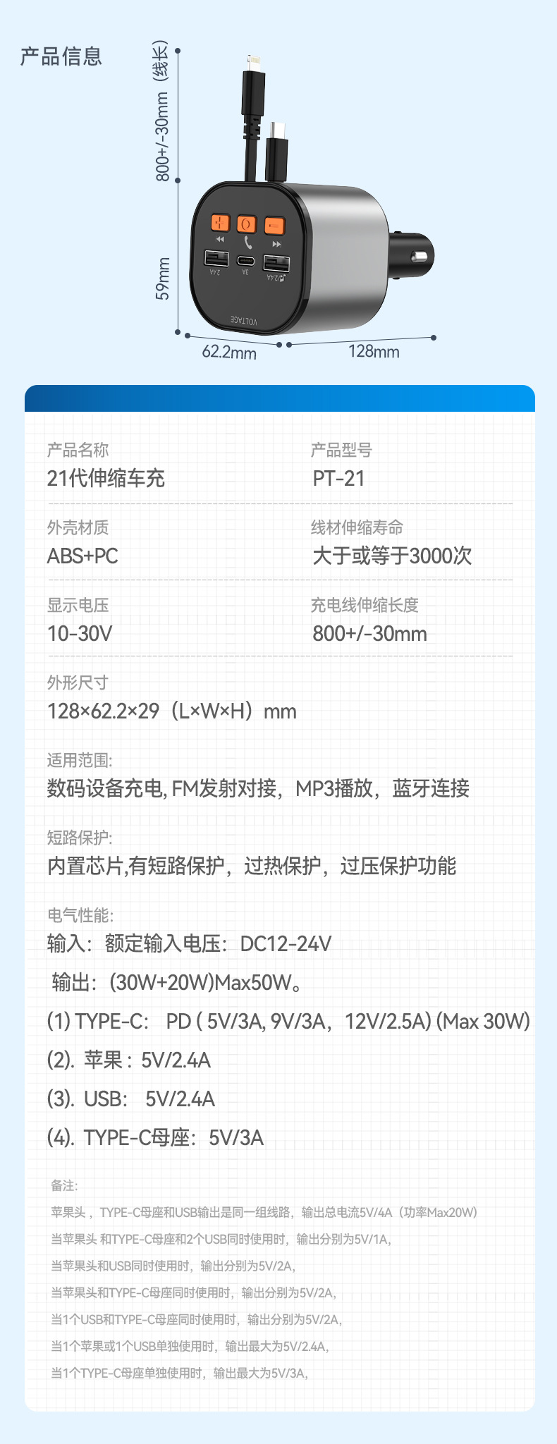 Multi function charger car bluetooth mp3 player lossless call QC3.0 fast charge telescopic line PD car charger