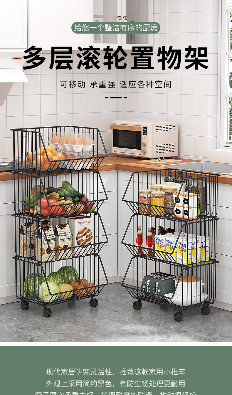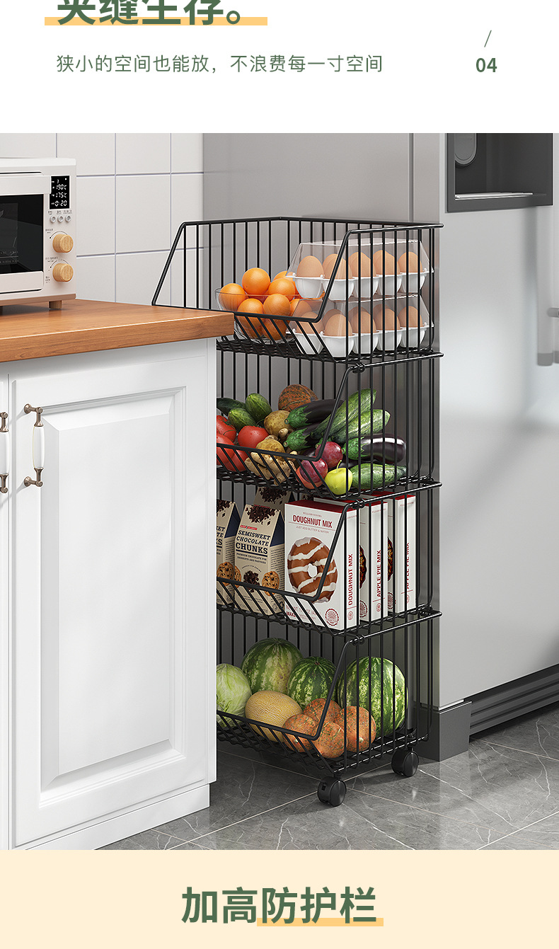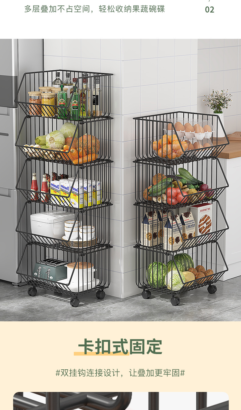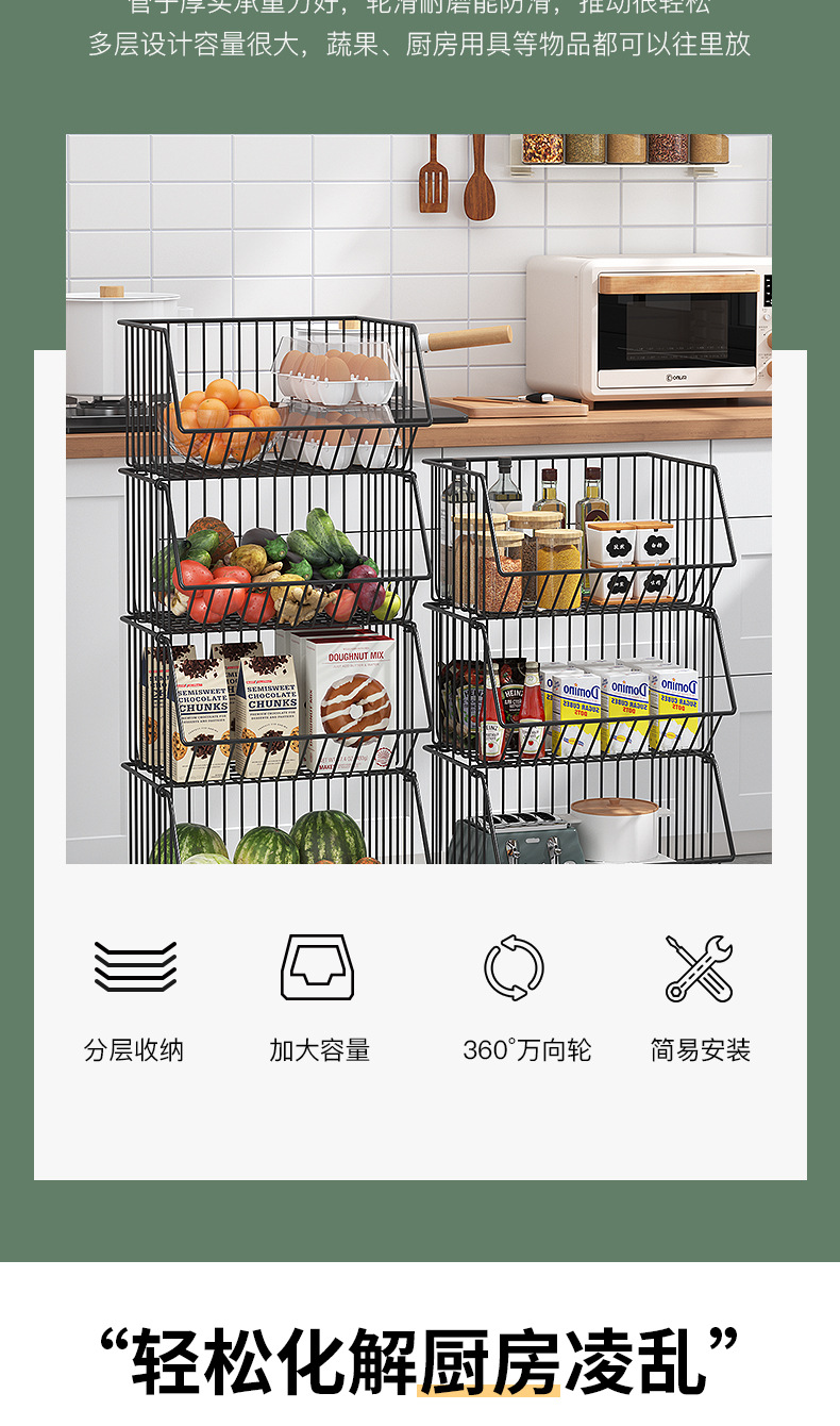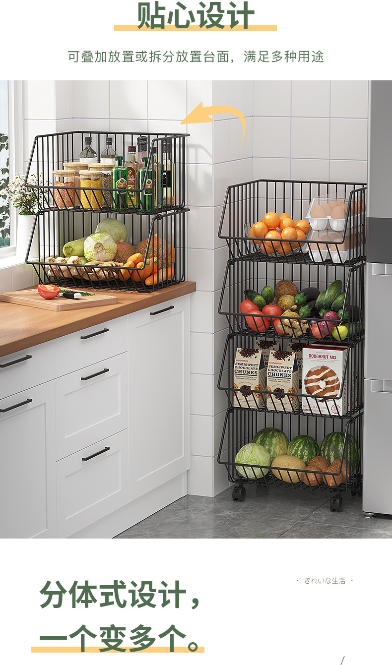 Multi-functional kitchen vegetable storage rack fruit storage rack non-perforated multi-layer floor storage rack storage basket basket