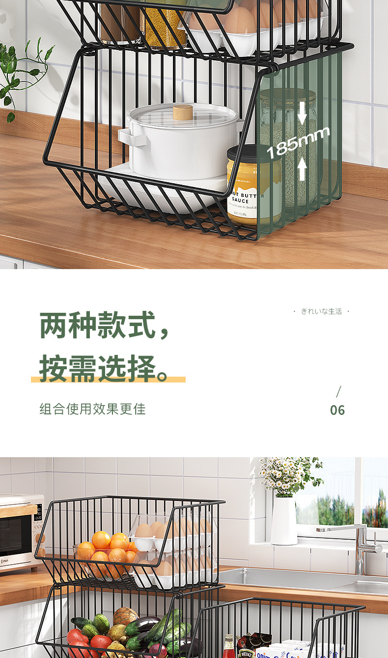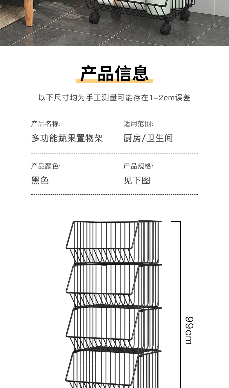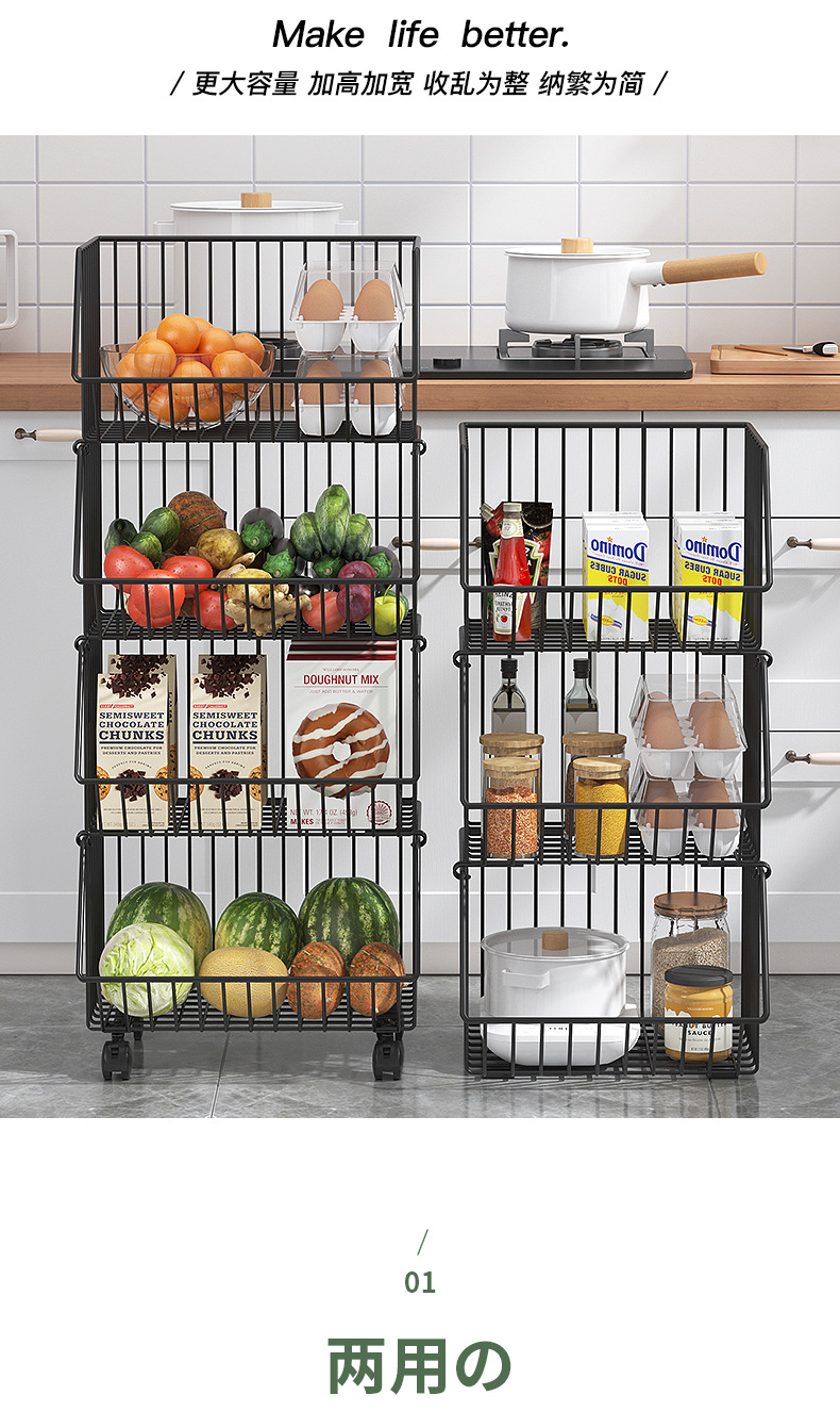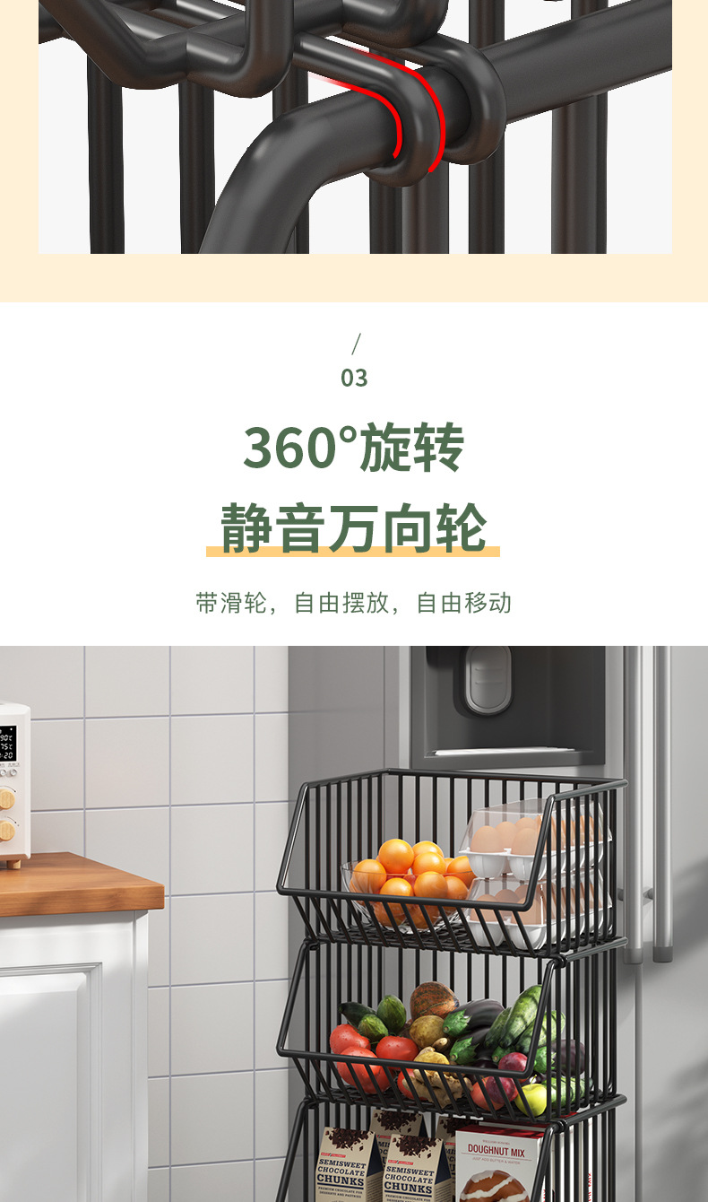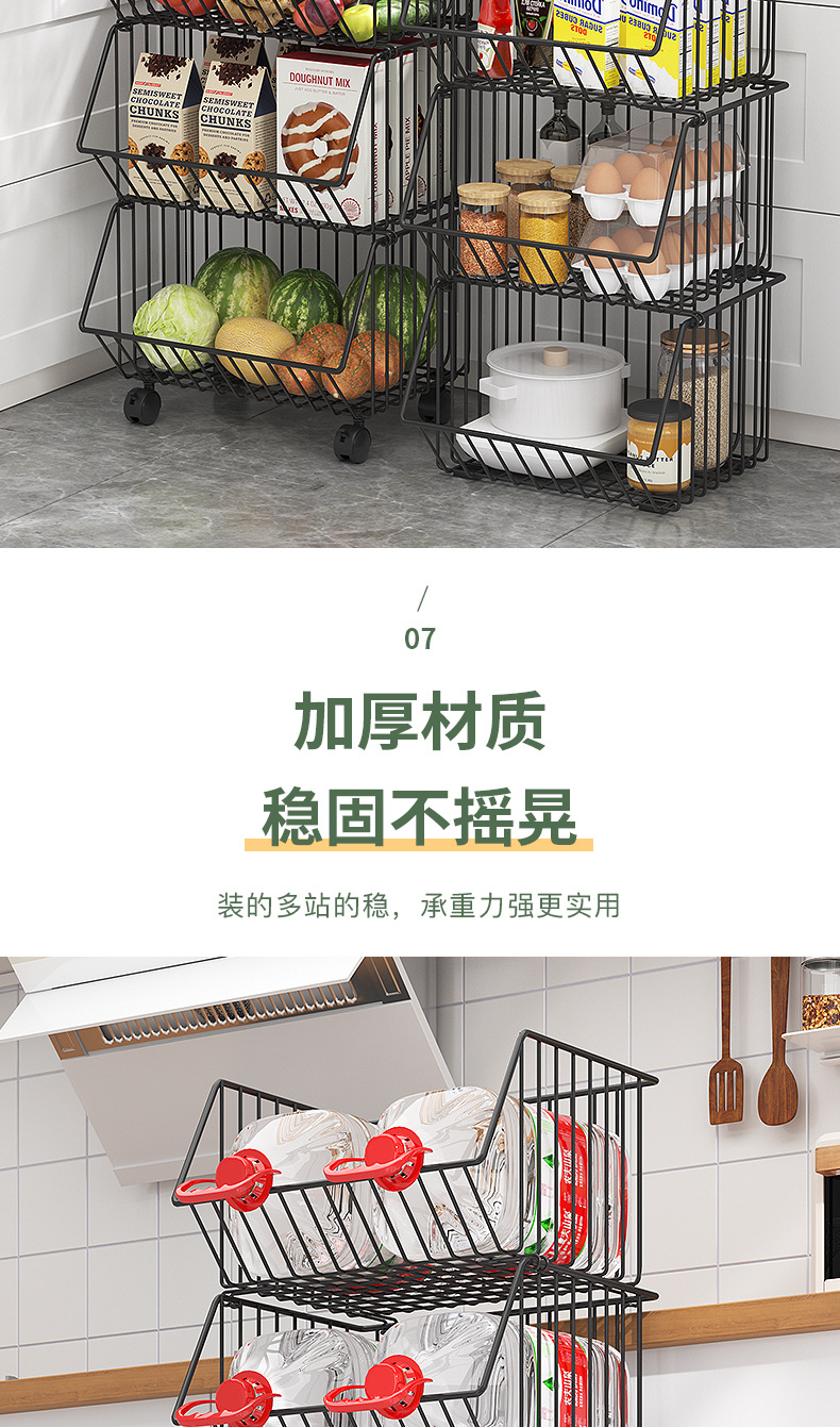 Multi-functional kitchen vegetable storage rack fruit storage rack non-perforated multi-layer floor storage rack storage basket basket