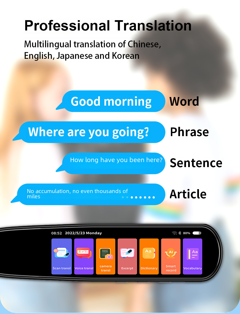 Multi-Language Capability:This scanner pen is designed to support multiple languages, including Vietnamese, Malay, Arabic, and more, making it a versatile tool for those who speak multiple languages.