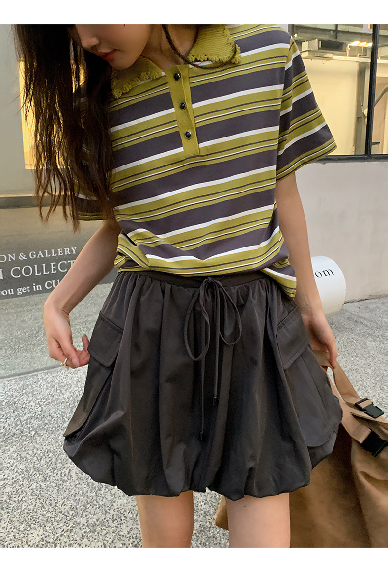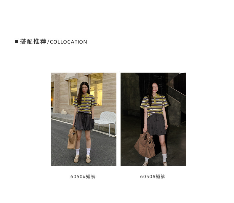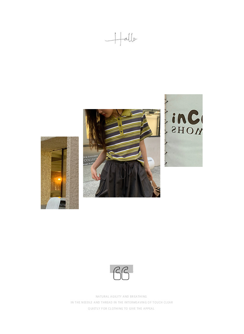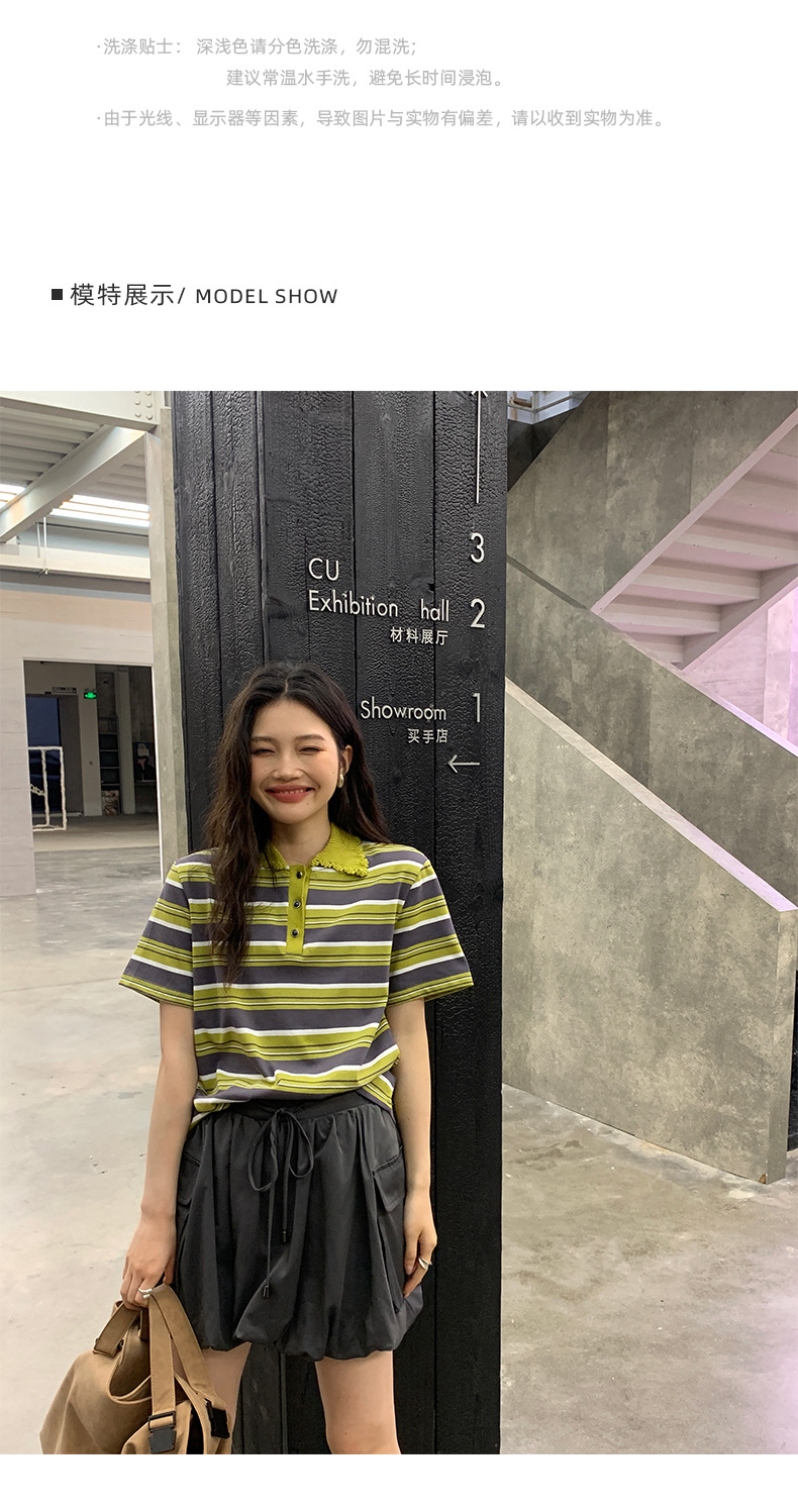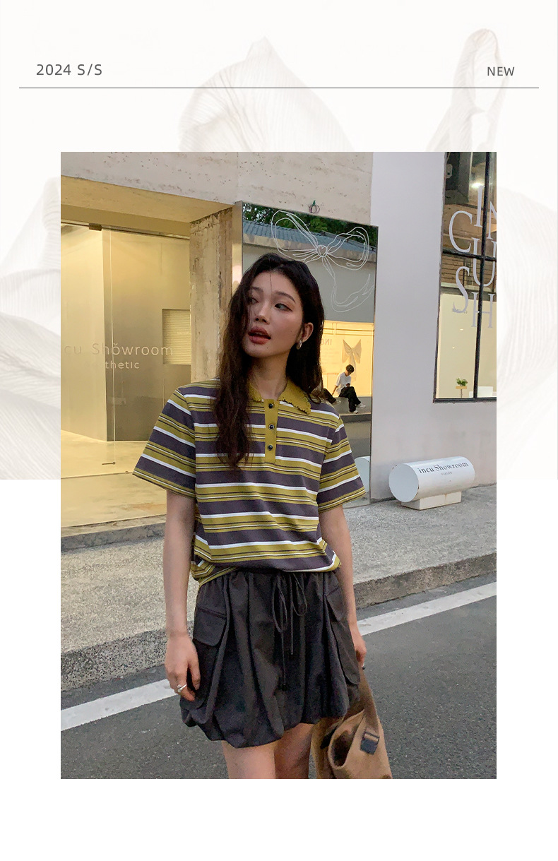 NEIHE OLD POLO Knitted Collar Niche Chic Top Contrast Striped Short sleeved T shirt Women s Summer 250217