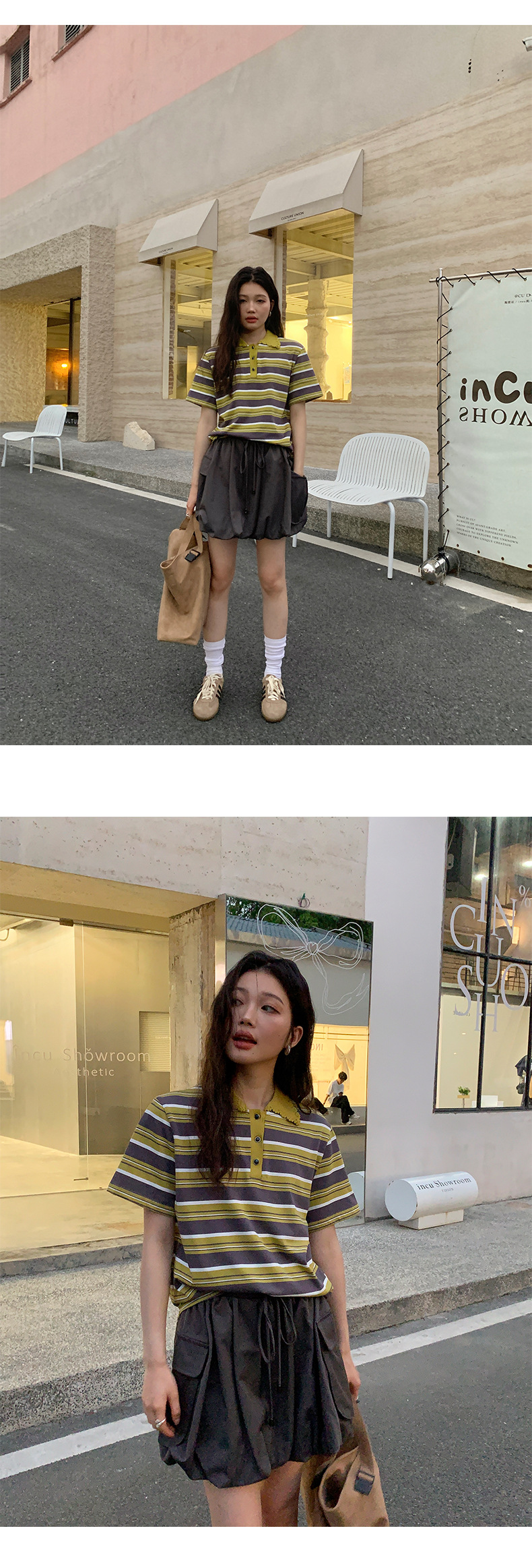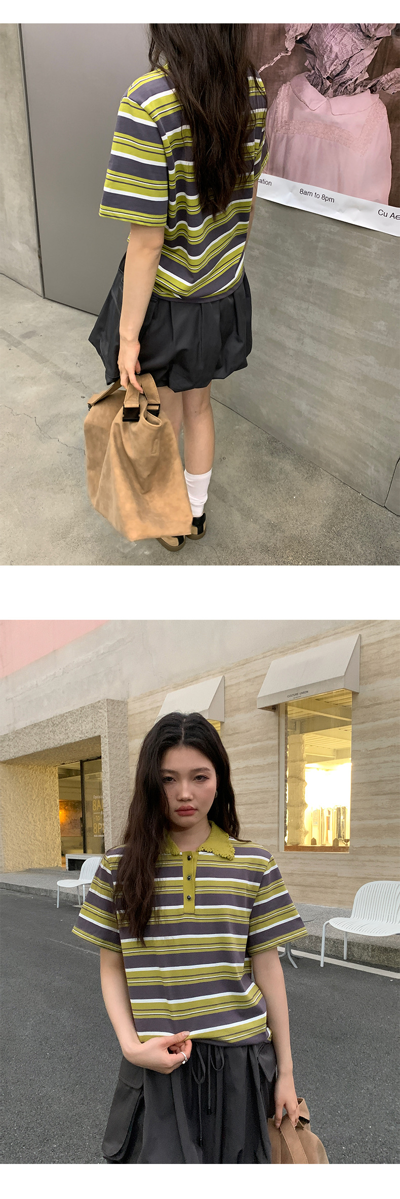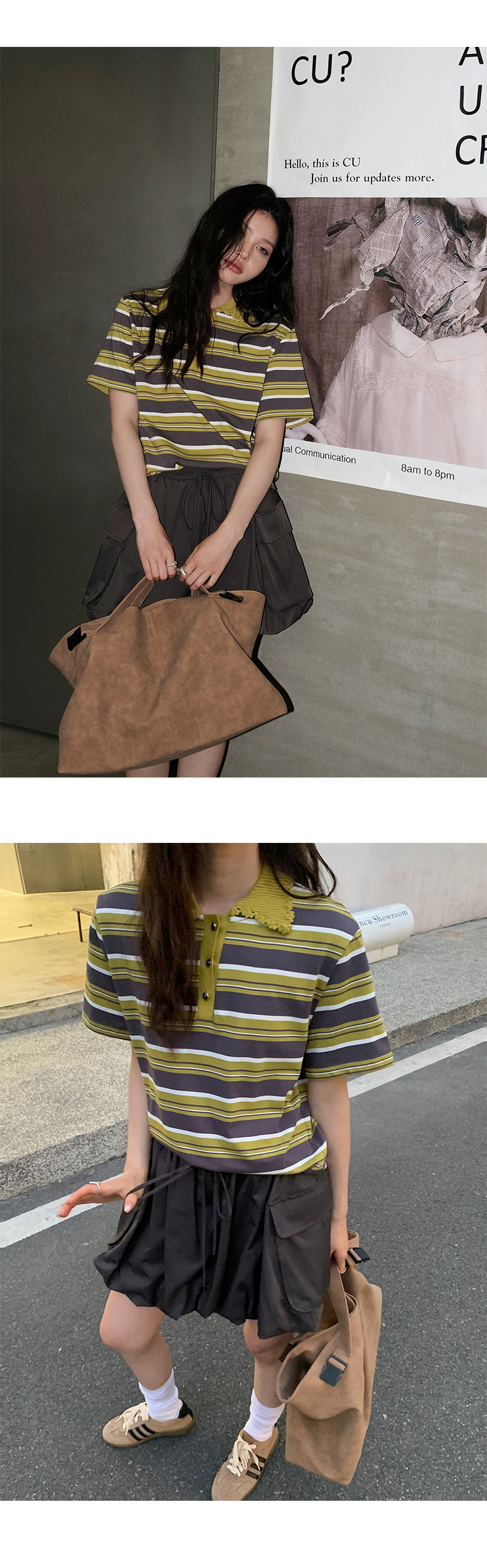 NEIHE OLD POLO Knitted Collar Niche Chic Top Contrast Striped Short sleeved T shirt Women s Summer 250217