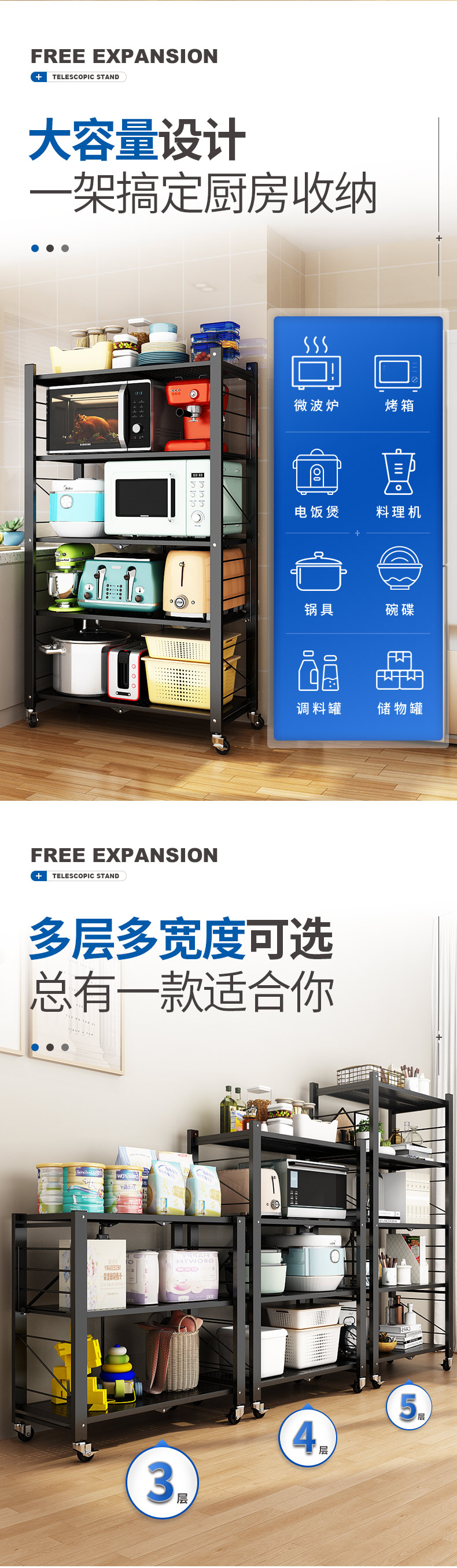 NU08 Weijing installation-free kitchen storage rack multi-layer floor foldable microwave oven storage rack multi-functional storage