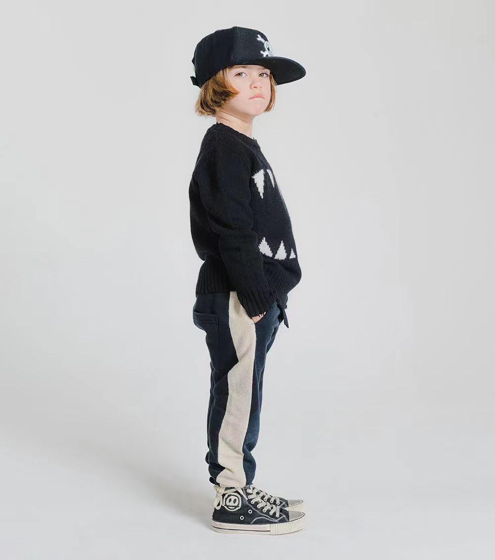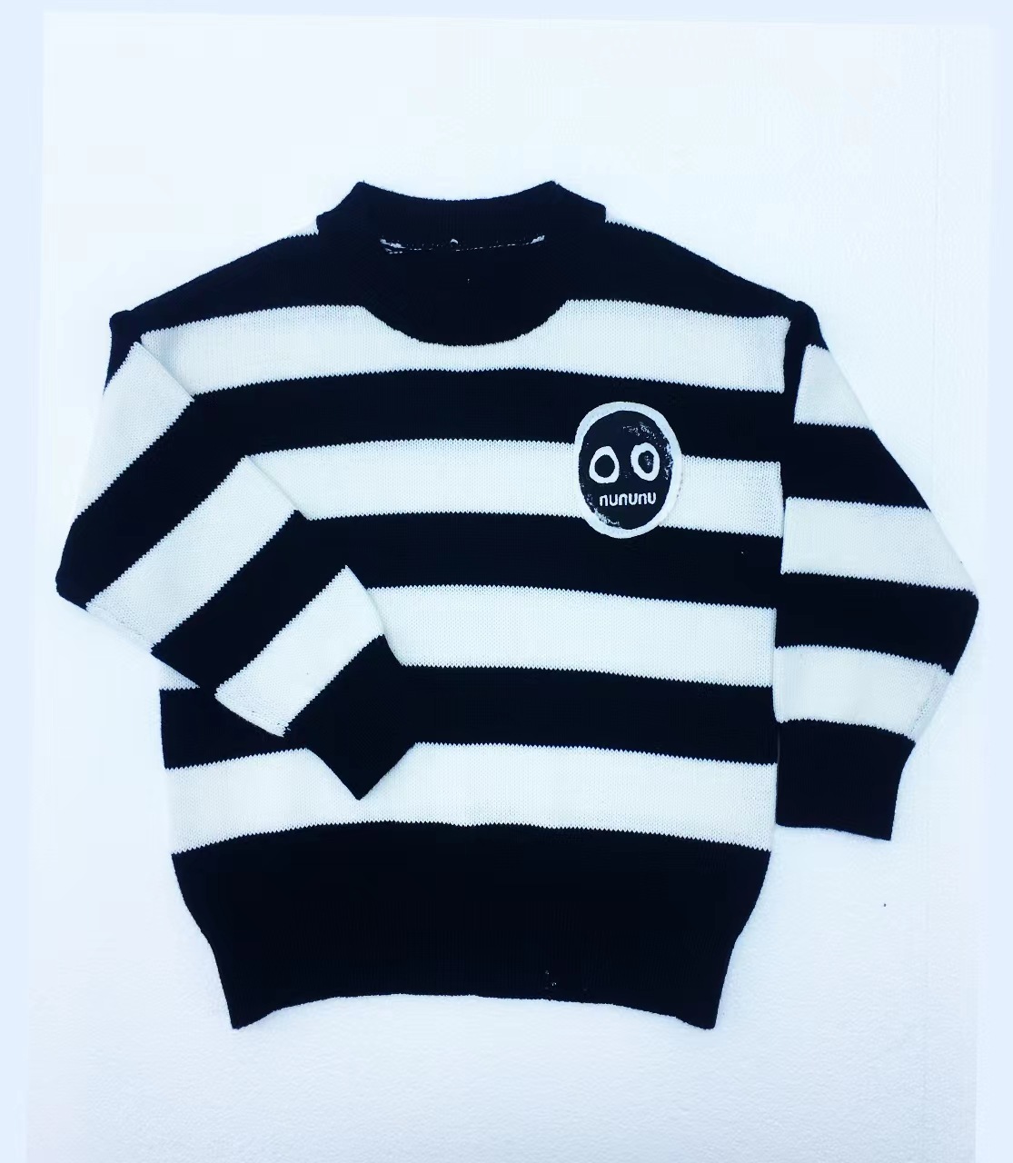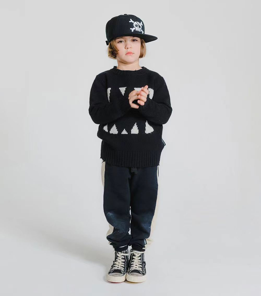 NUU same autumn and winter children s warm round neck pullover sweater retro black and white striped plaid sweater in stock wholesale