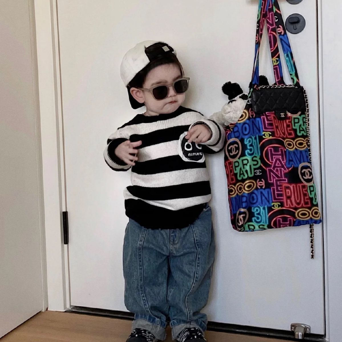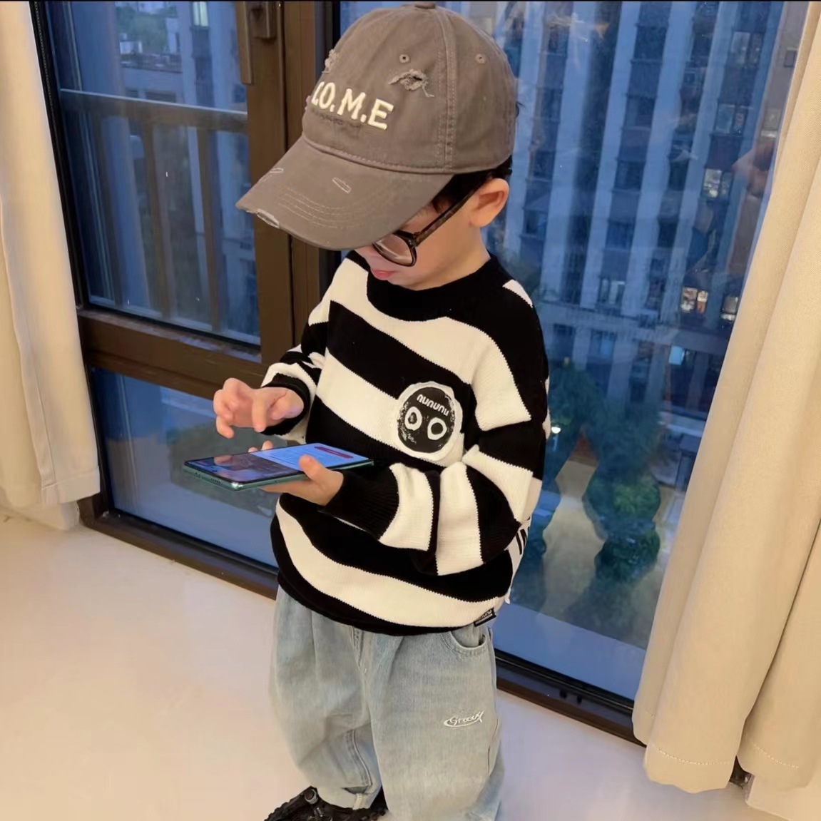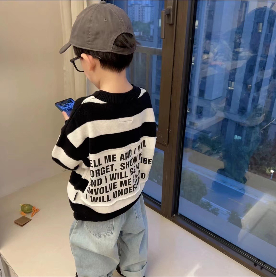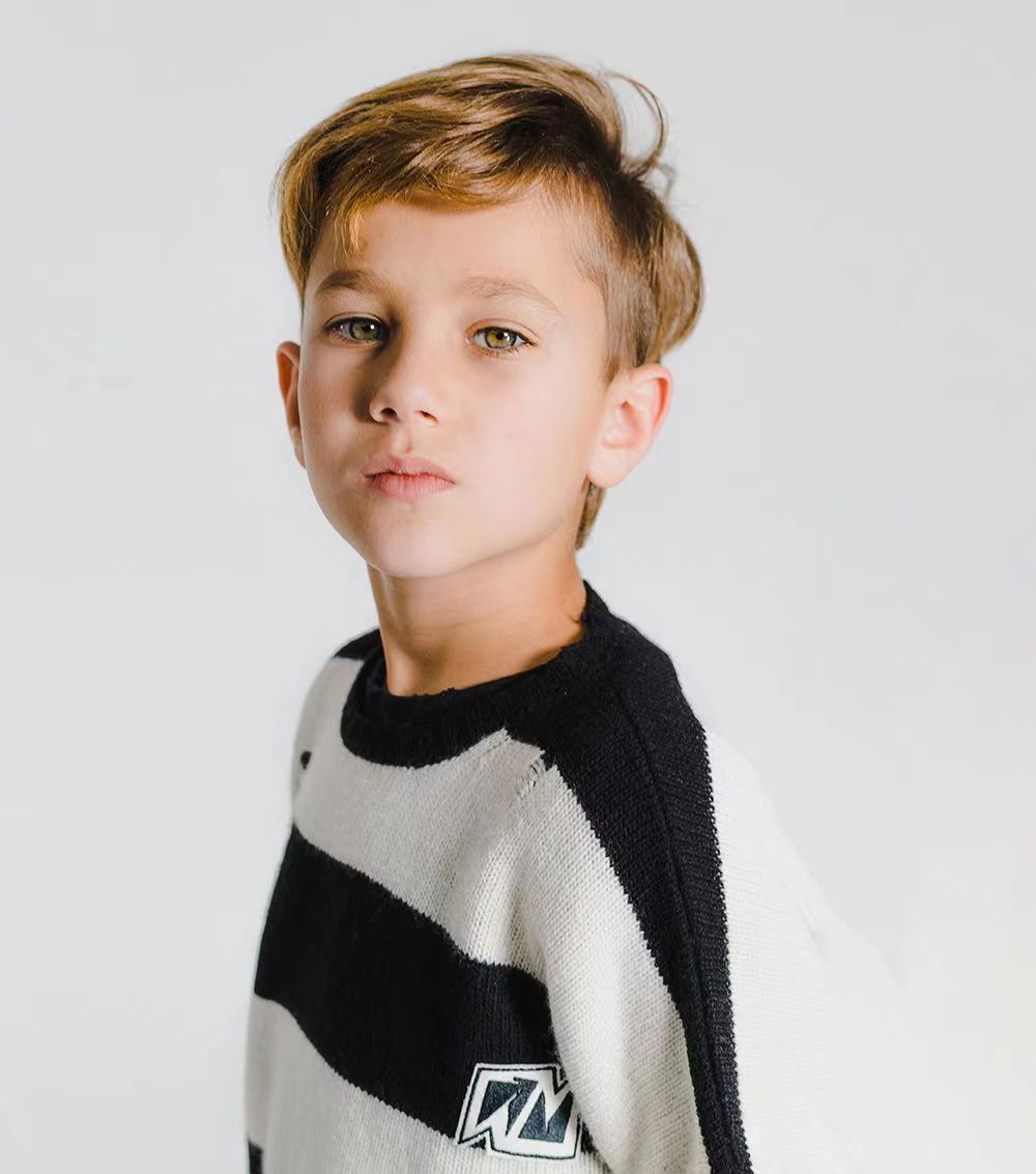 NUU same autumn and winter children s warm round neck pullover sweater retro black and white striped plaid sweater in stock wholesale