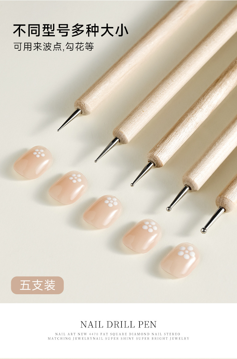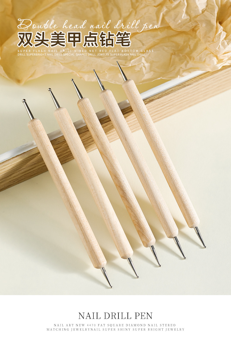 Nail Pen suit Japanese Wooden Pole 5 Double Head Dot Pen Sticky Drill Depiction Pen Dot Pen Nail Decoration Tool