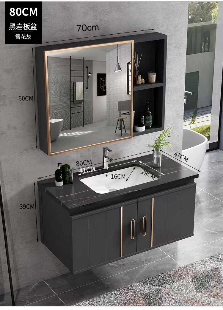 - 80 main cabinet ceramic basin induction mirror cabinet (send hardware)