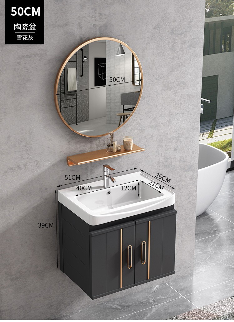 - 50 main cabinet ceramic basin round mirror (send hardware)