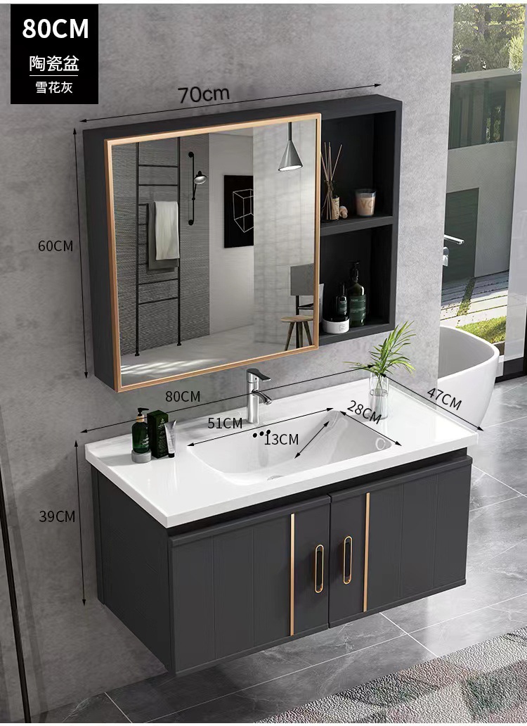 - 80 main cabinet ceramic basin mirror cabinet (send hardware)