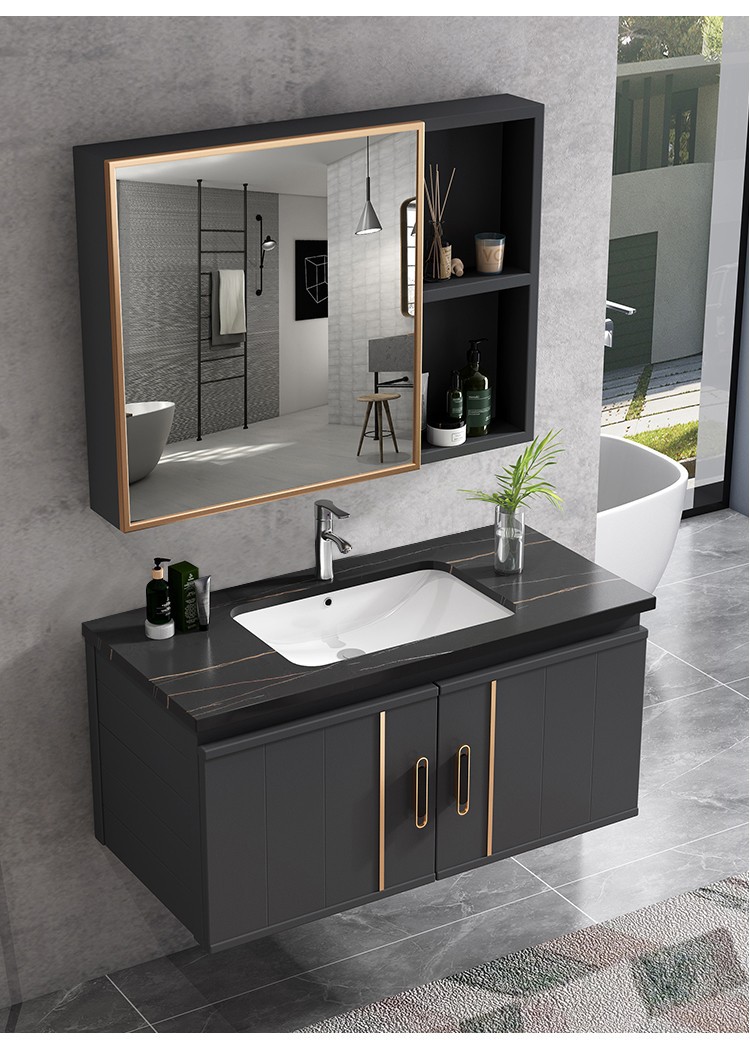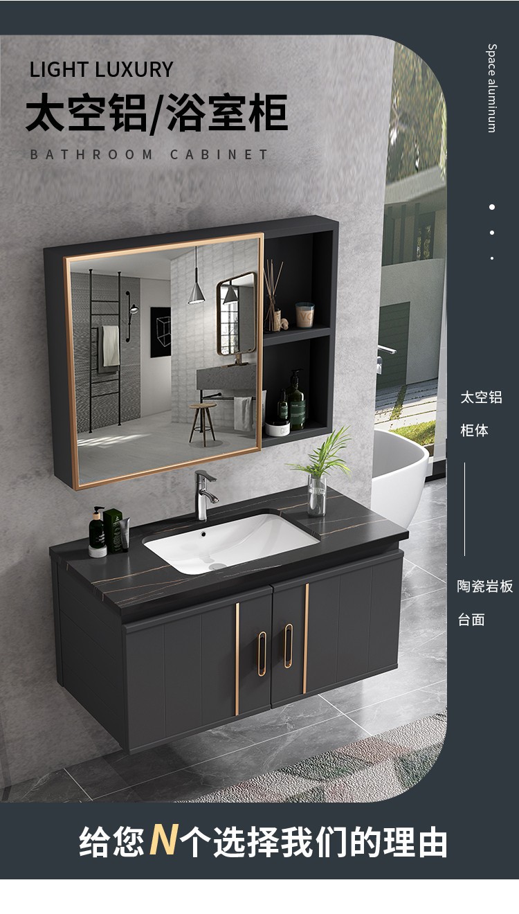 Net red rock board space aluminum bathroom cabinet combination bathroom simple wash basin small apartment wash table integrated