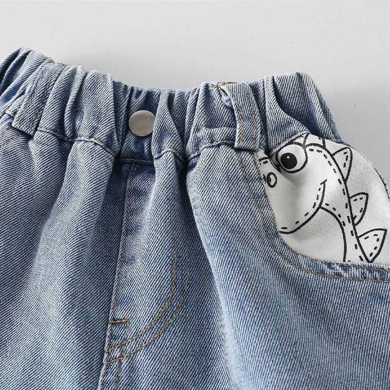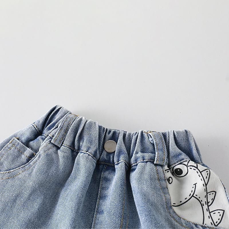 New 24 Boys Denim Summer Shorts Summer Children s Korean style Five length Pants Children s Casual Cartoon Mid length Pants Thin