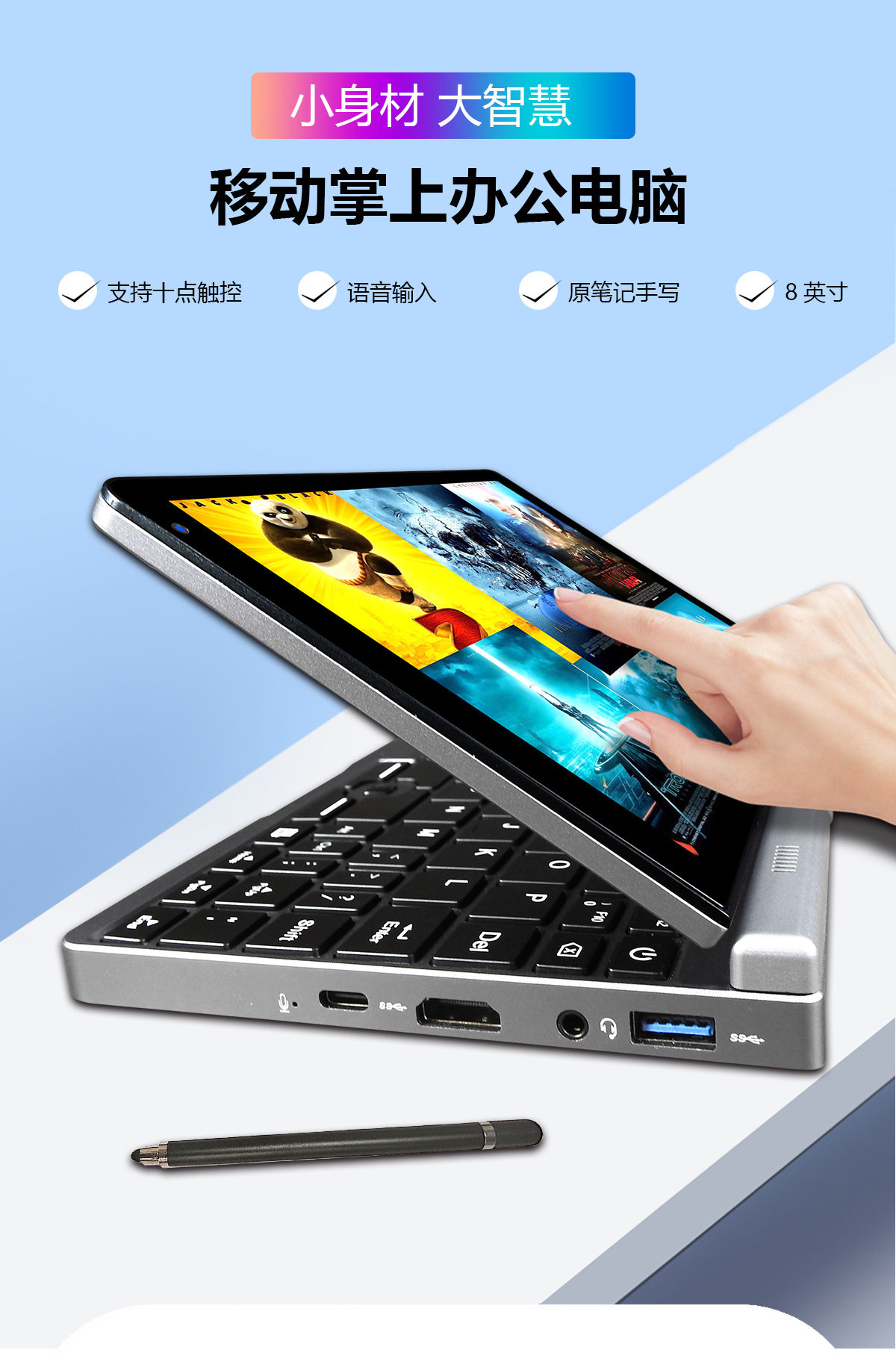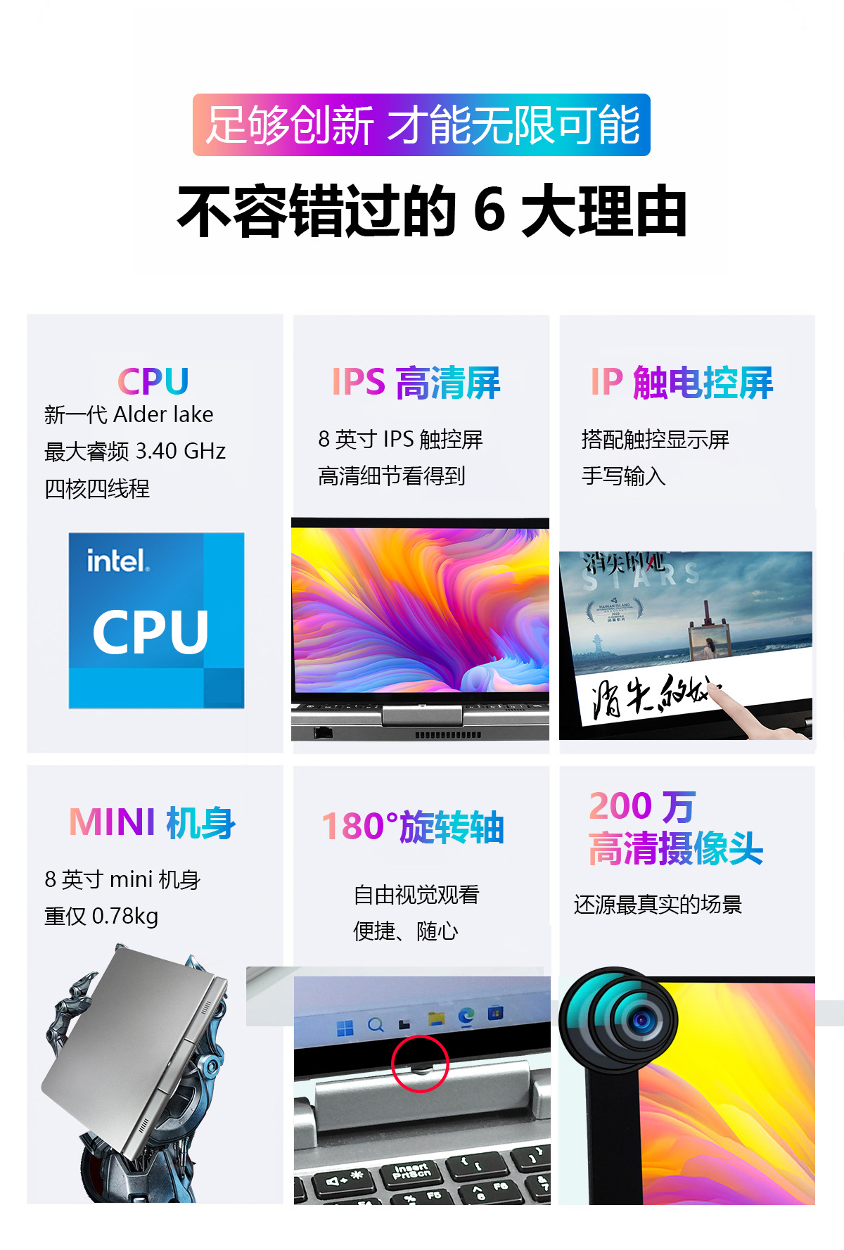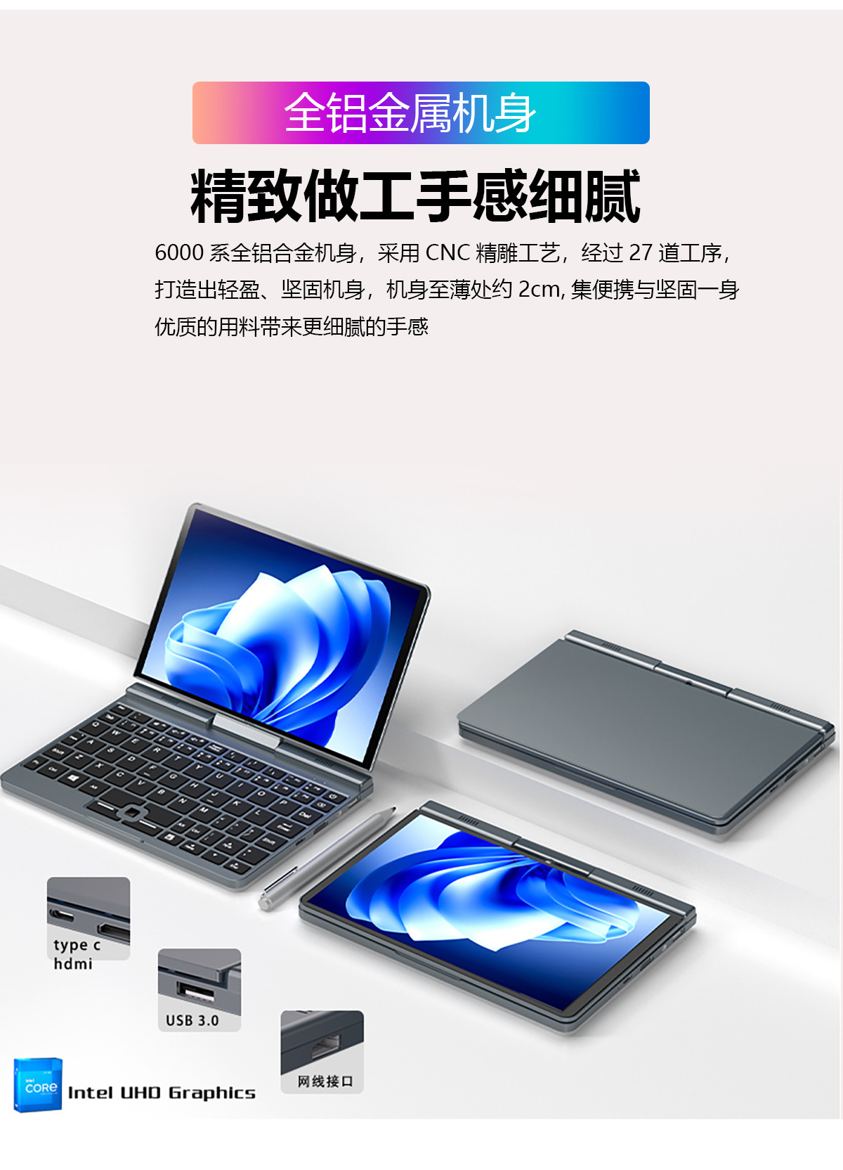 New 8 inch mini pocket Laptop Tablet Alder Lake-N N100 RJ 45 180 rotating