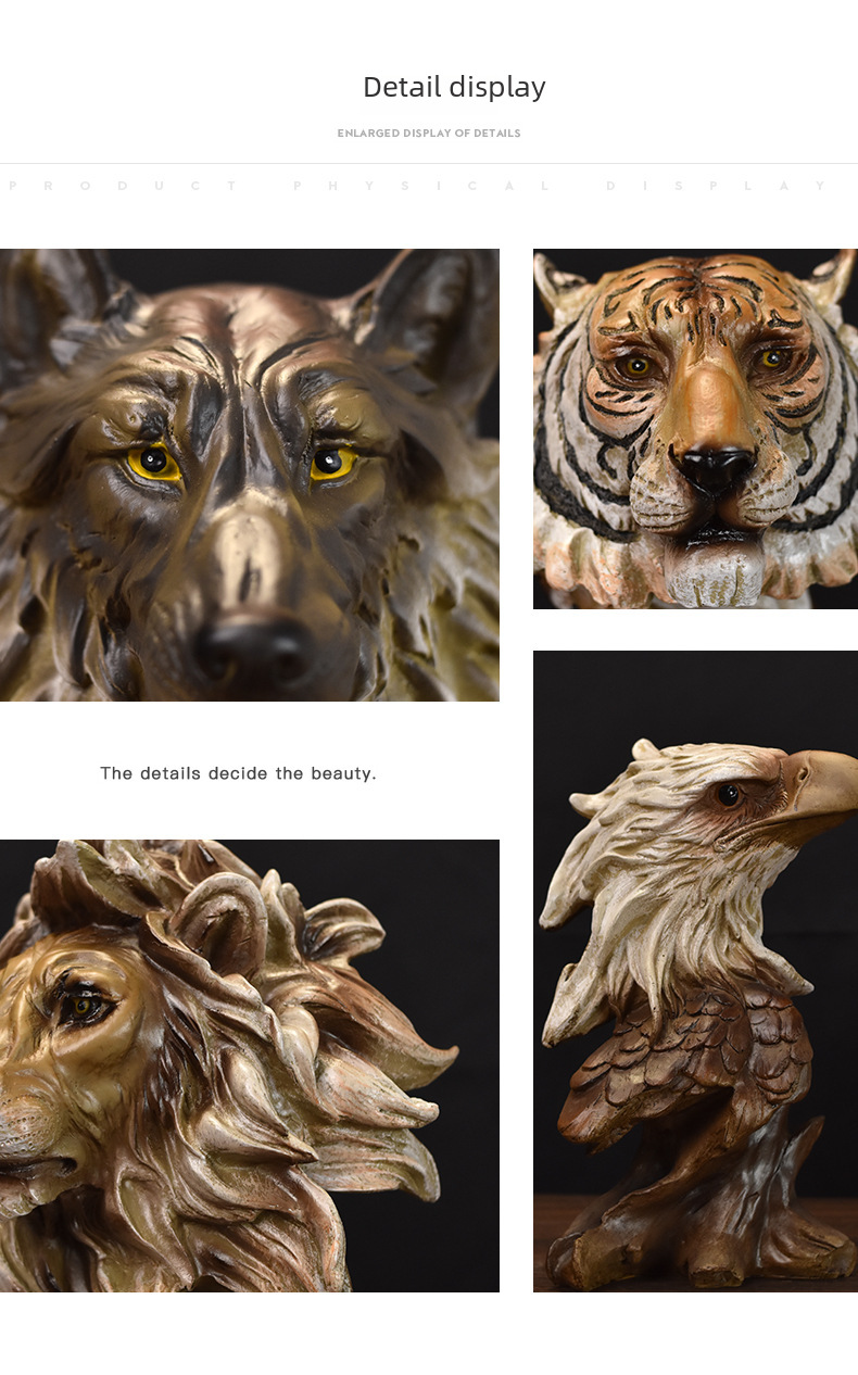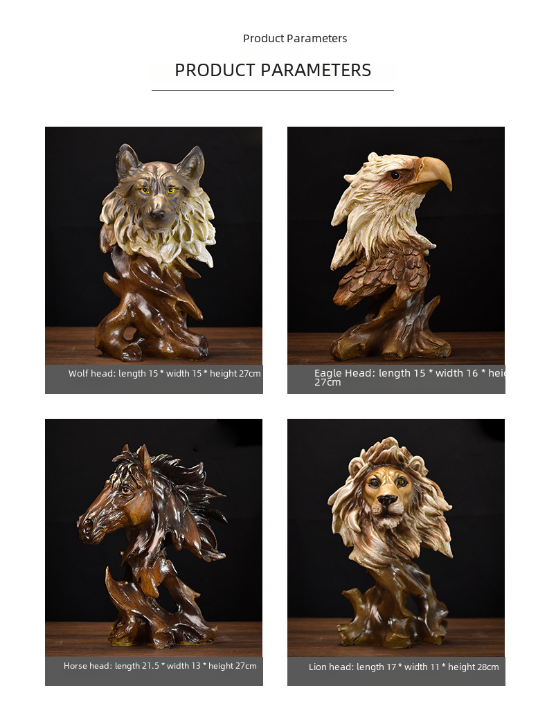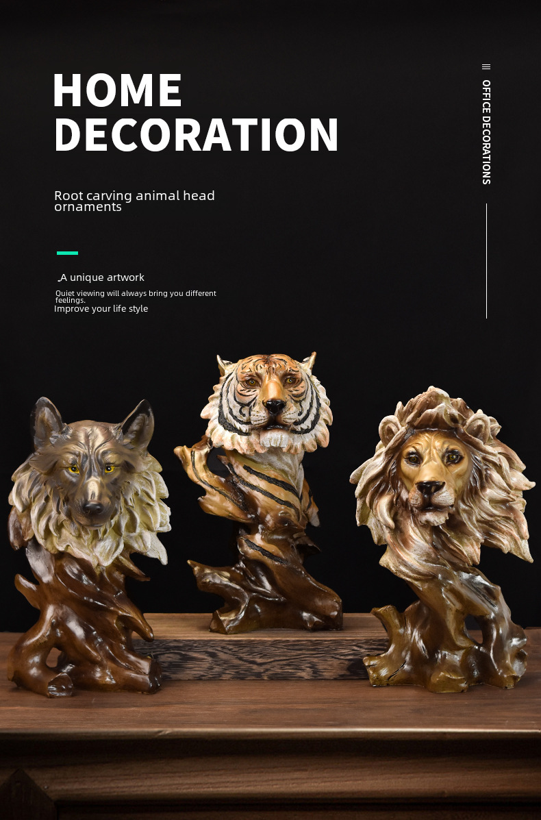 New American Retro Home creative simulation animal head portrait resin crafts decoration office desktop decoration