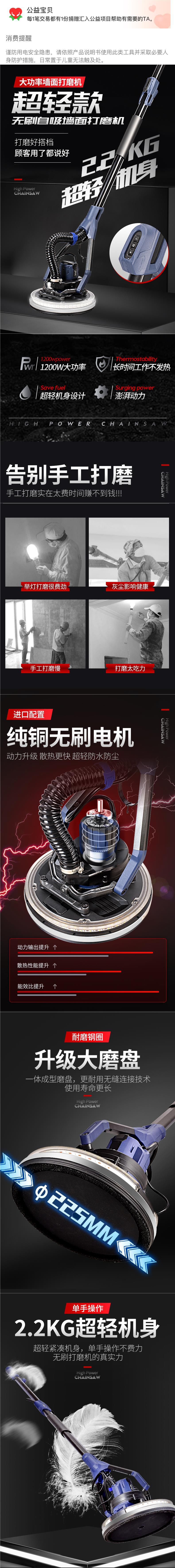 New Brushless Wall Putty Long Rod Grinder Self absorbing Top Dust free Sandpaper Paint Tool Special Artifact