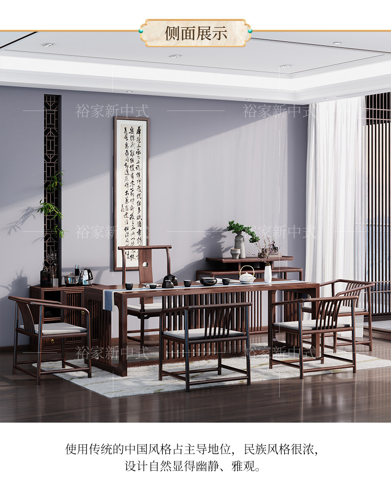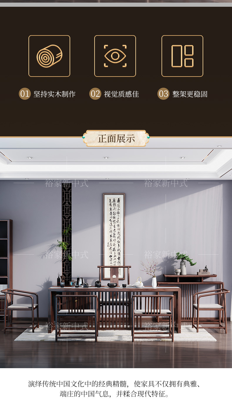 New Chinese quality tea table chair combination black walnut Zen Kungfu tea table simple office tea table elm tea table
