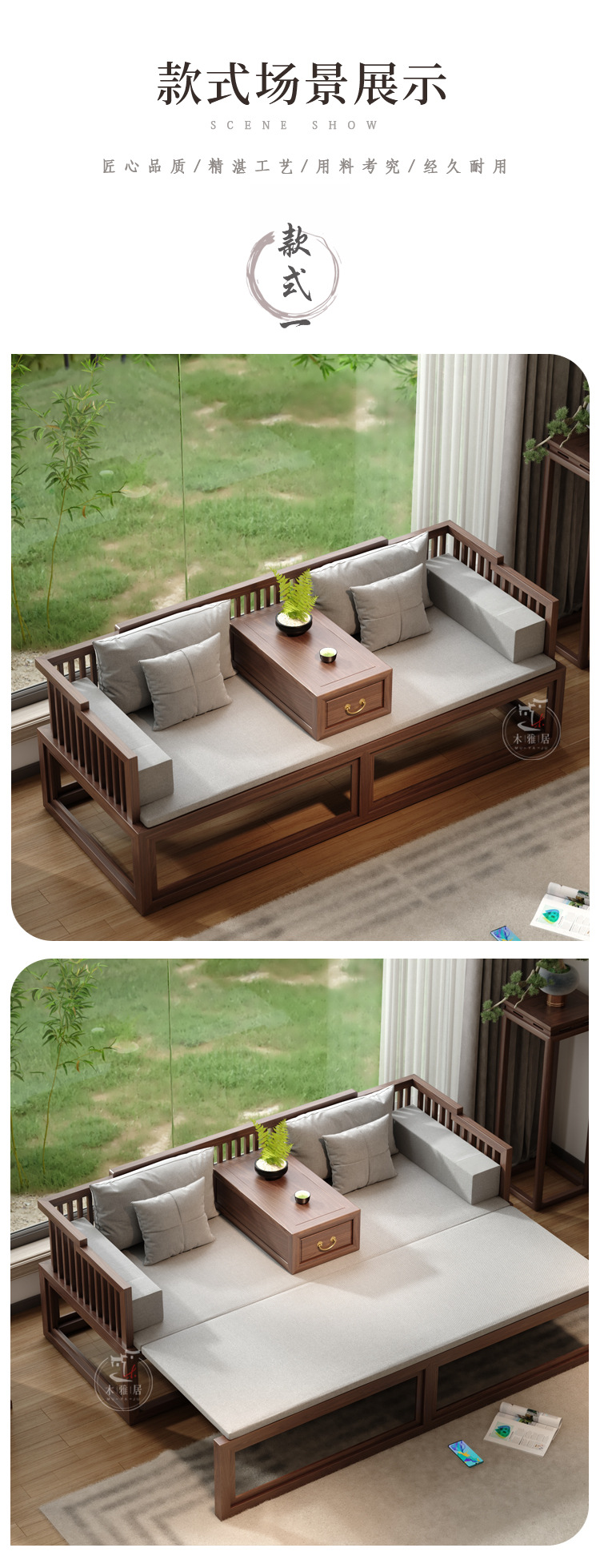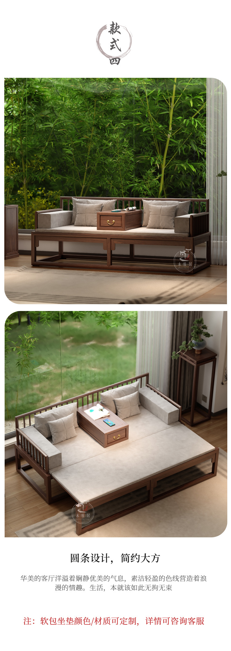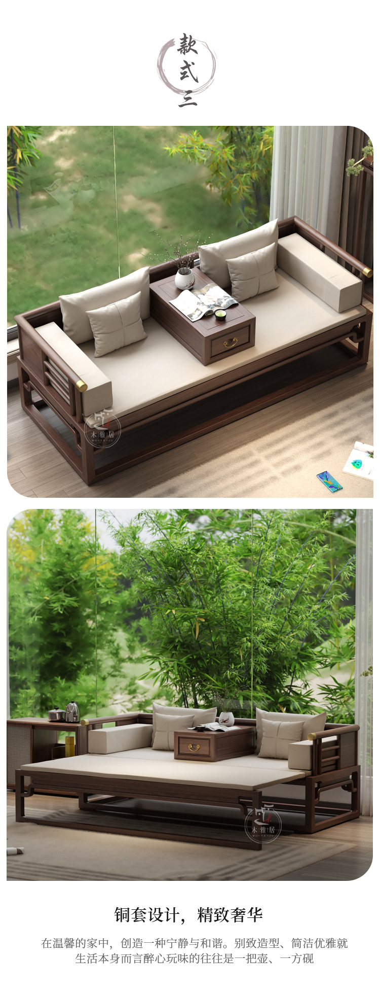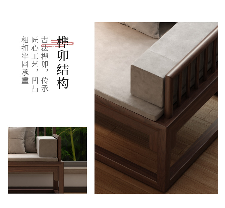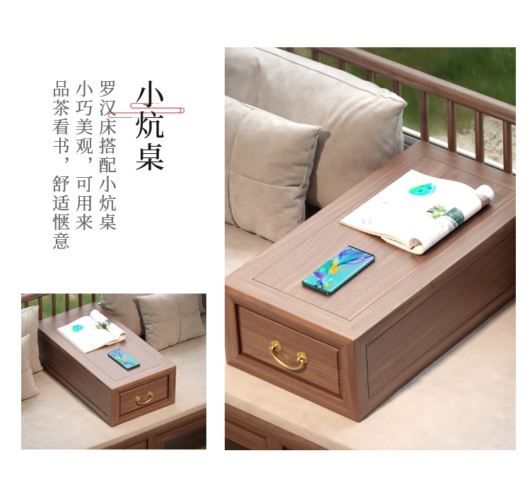 New Chinese style Luohan Bed Solid Wood Push pull Bed Black Walnut Small Apartment Living Room Telescopic Sofa Simple Modern Imperial Couch