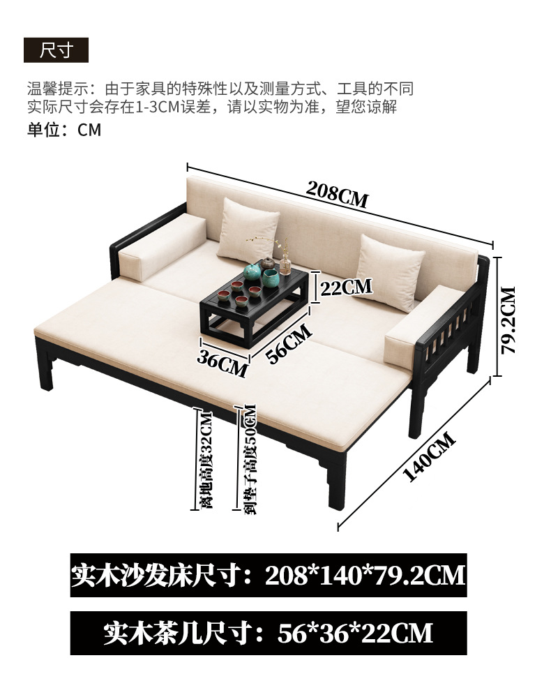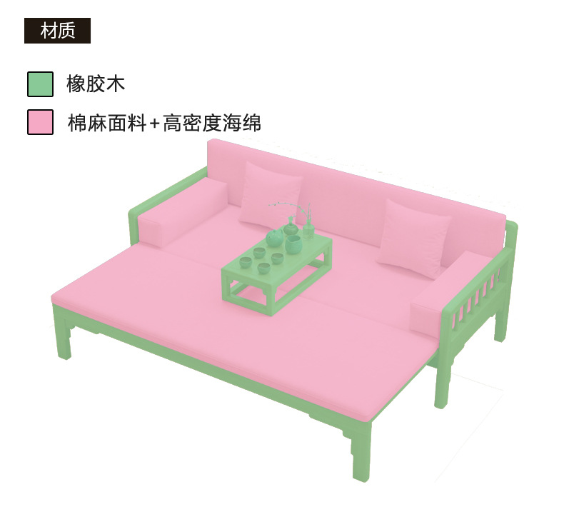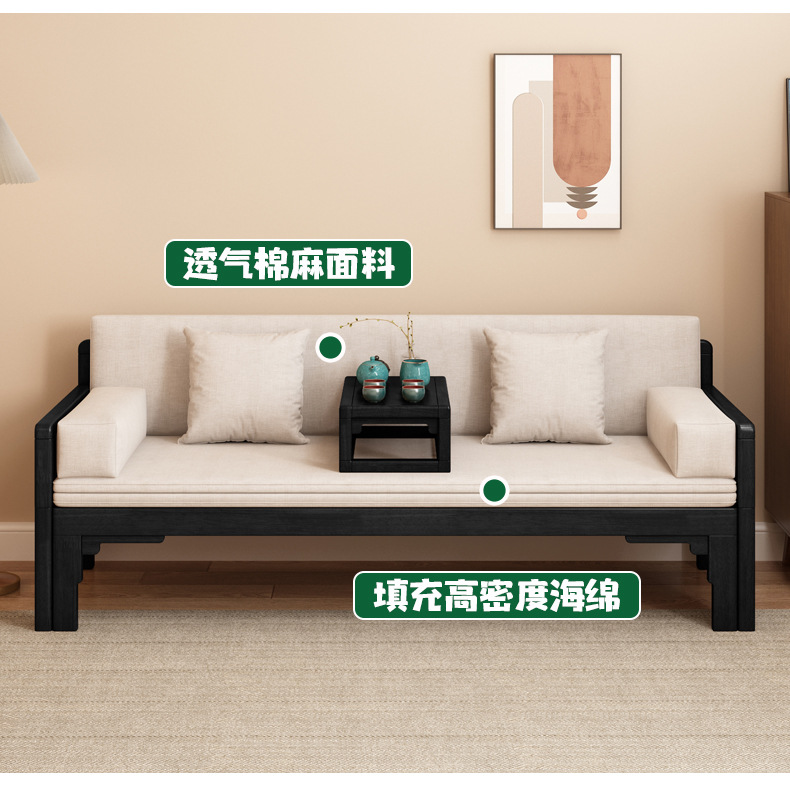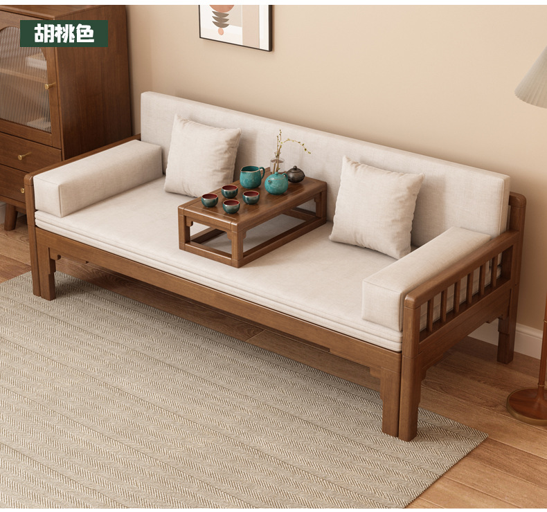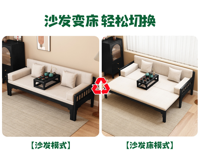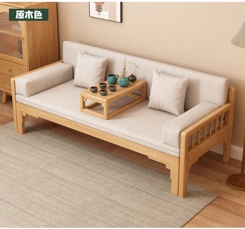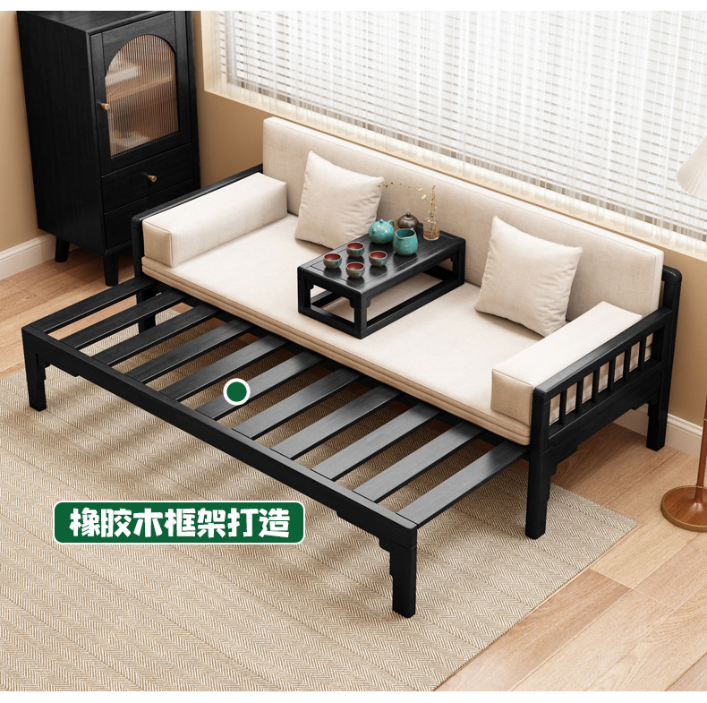 New Chinese style luohan bed small apartment modern minimalist home push pull solid wood sofa furniture living room flat bed telescopic bed