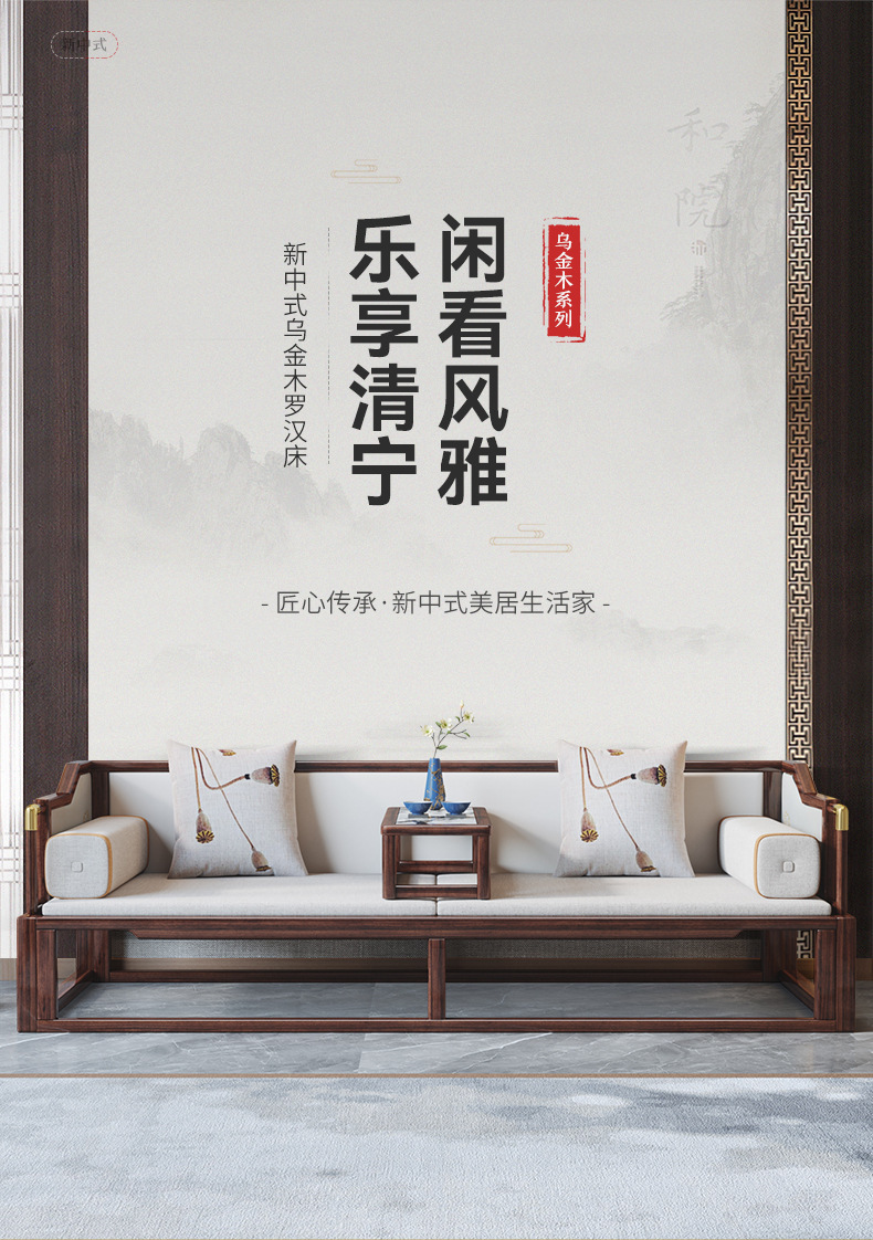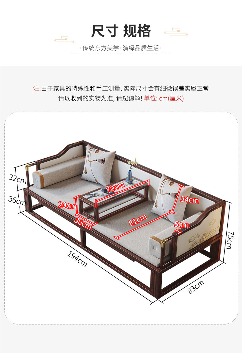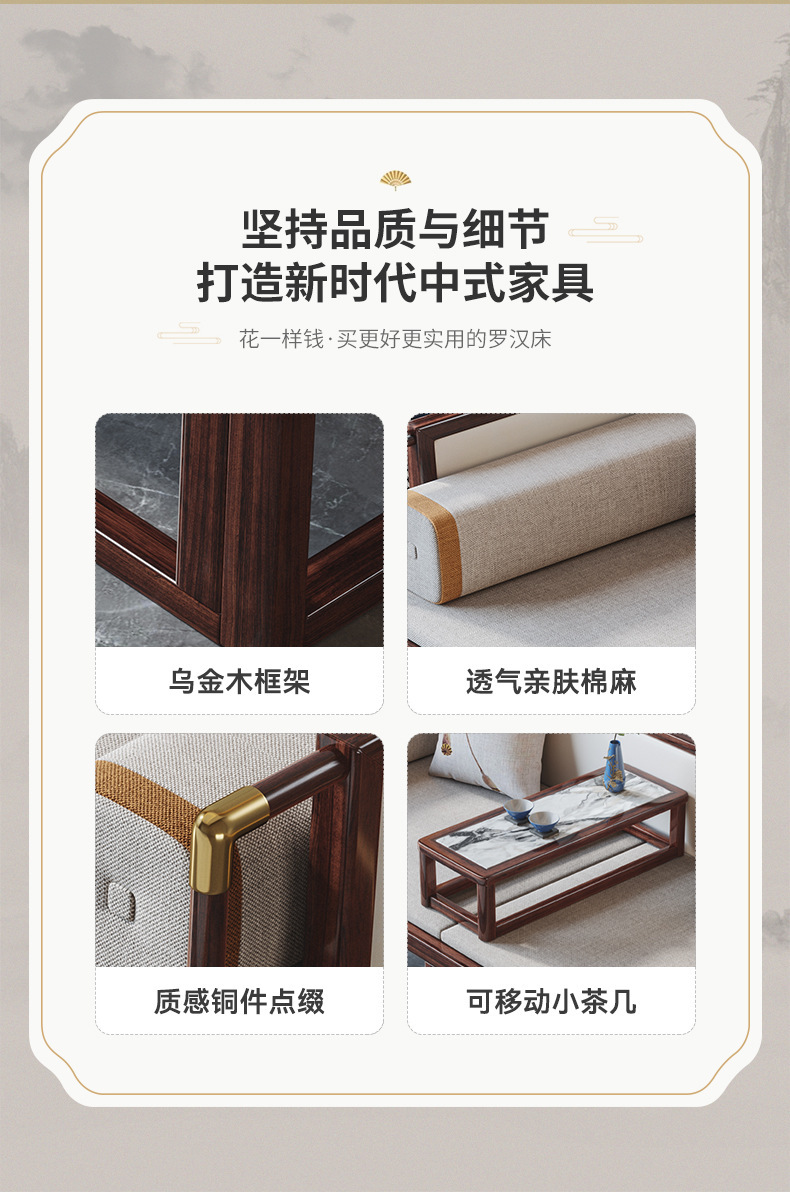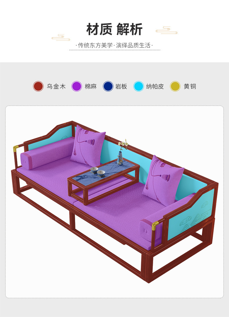 New Chinese style solid wood luohan bed Ebony sofa bed large and small apartment multi functional Zen bed Kang living room furniture