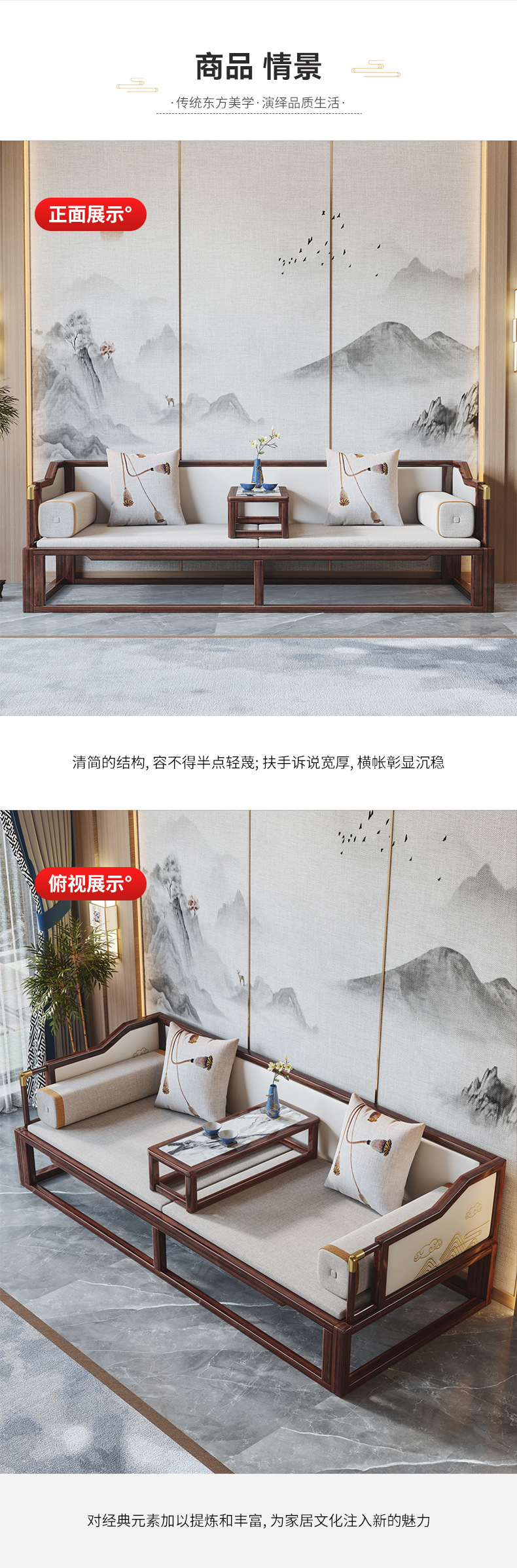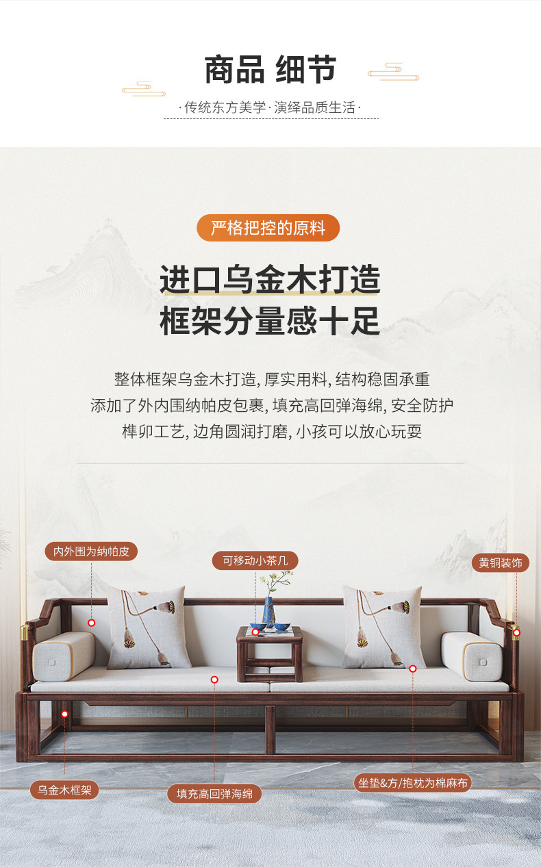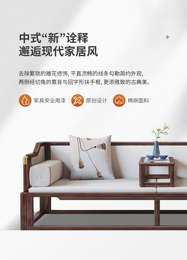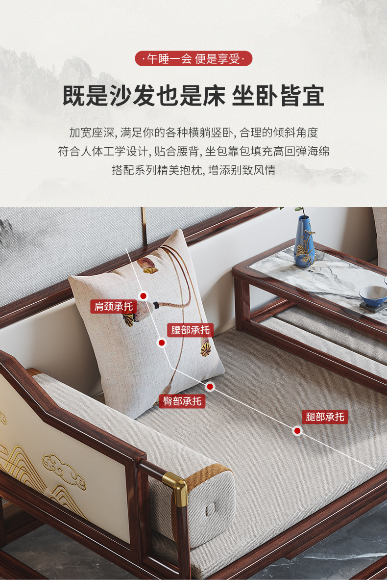 New Chinese style solid wood luohan bed Ebony sofa bed large and small apartment multi functional Zen bed Kang living room furniture