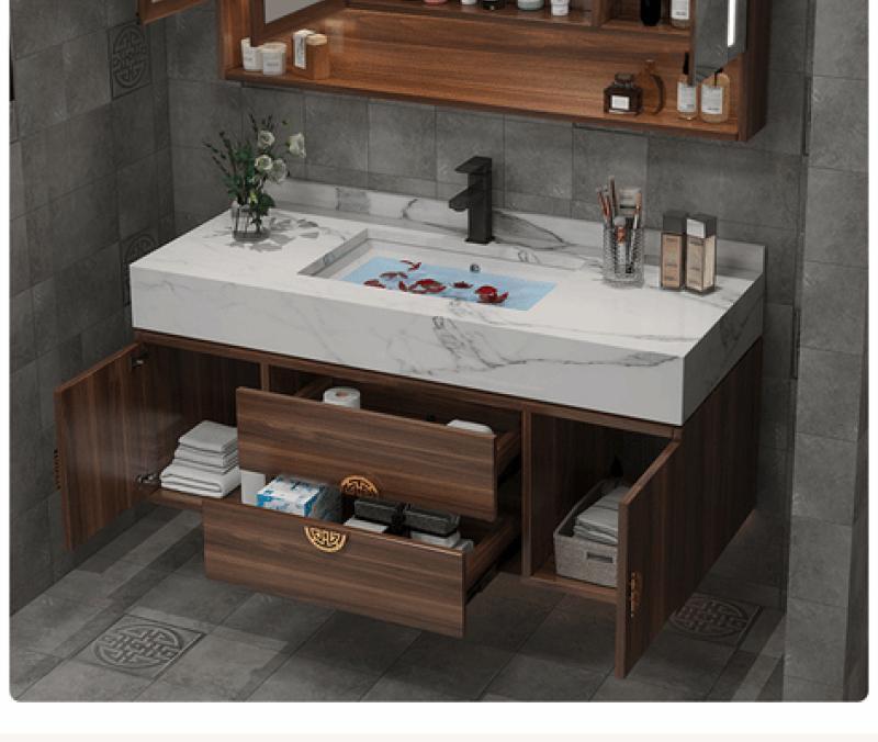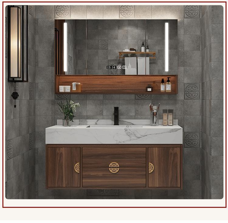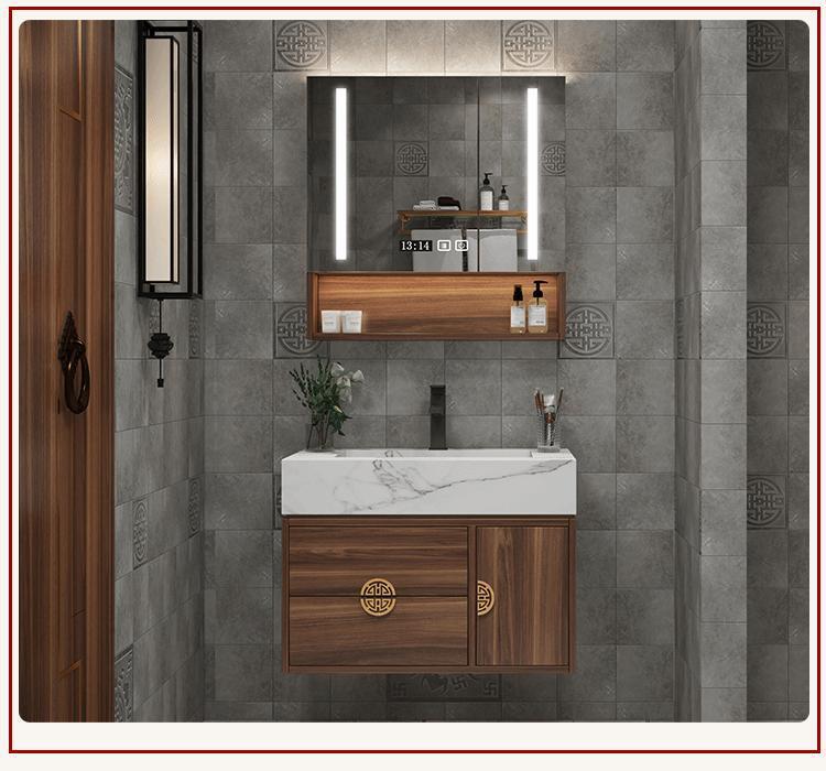 New Chinese style solid wood marble bathroom cabinet intelligent combination bathroom sink wash basin wash table now made...