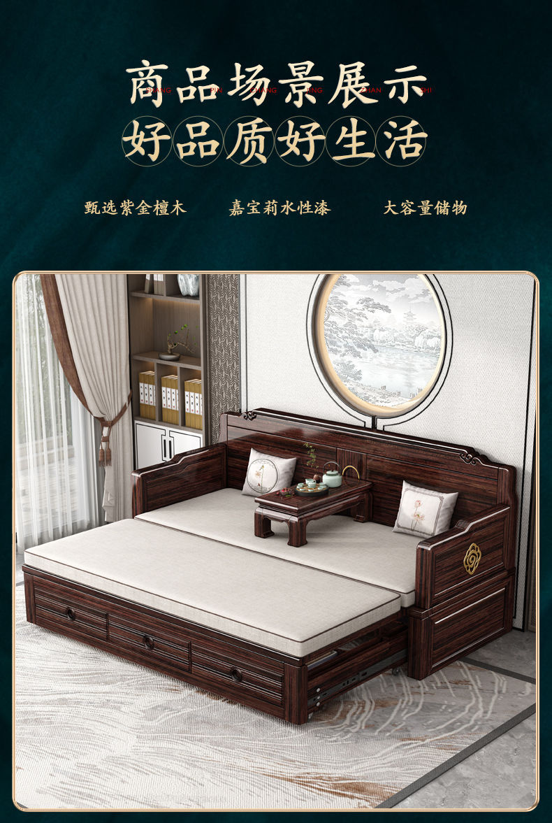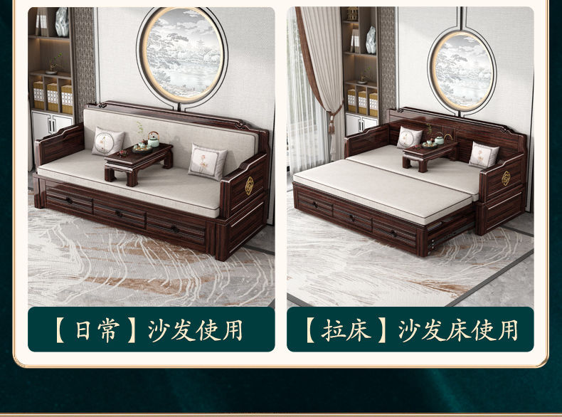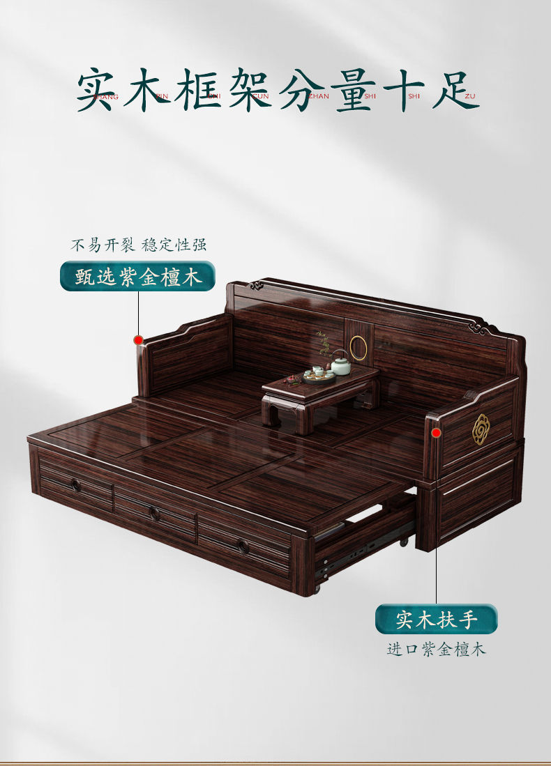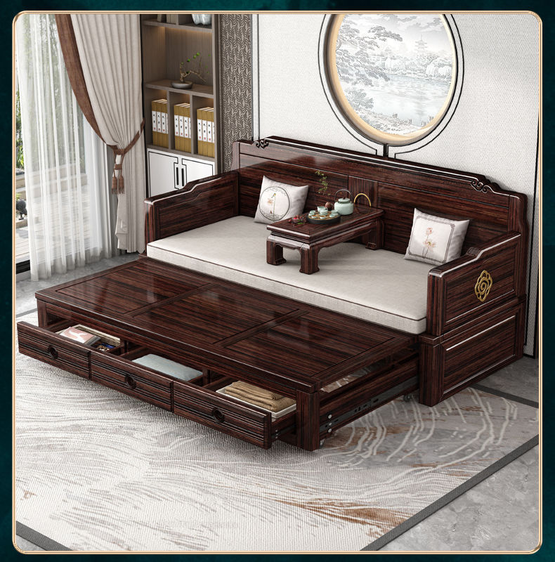 New Chinese style solid wood sofa bed high end sofa bed dual use small apartment retractable push pull purple gold sandalwood arhat bed