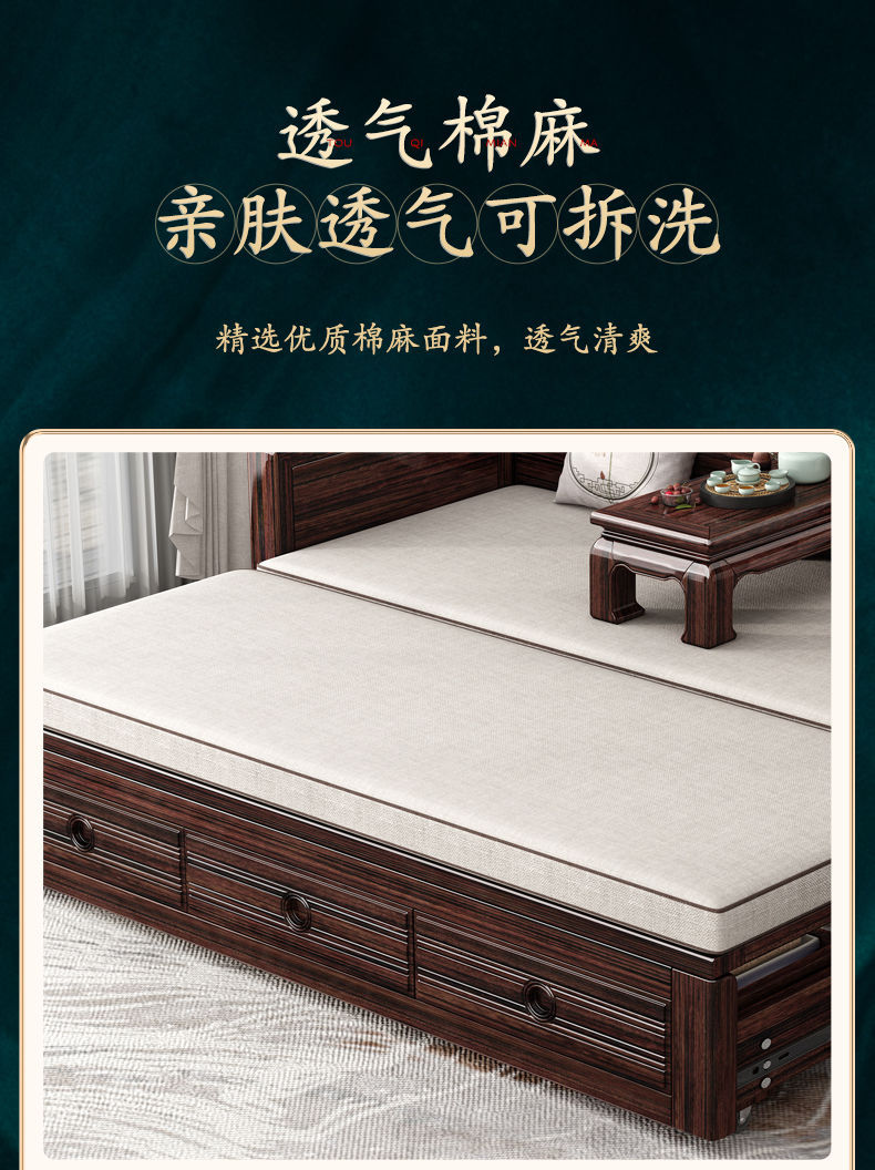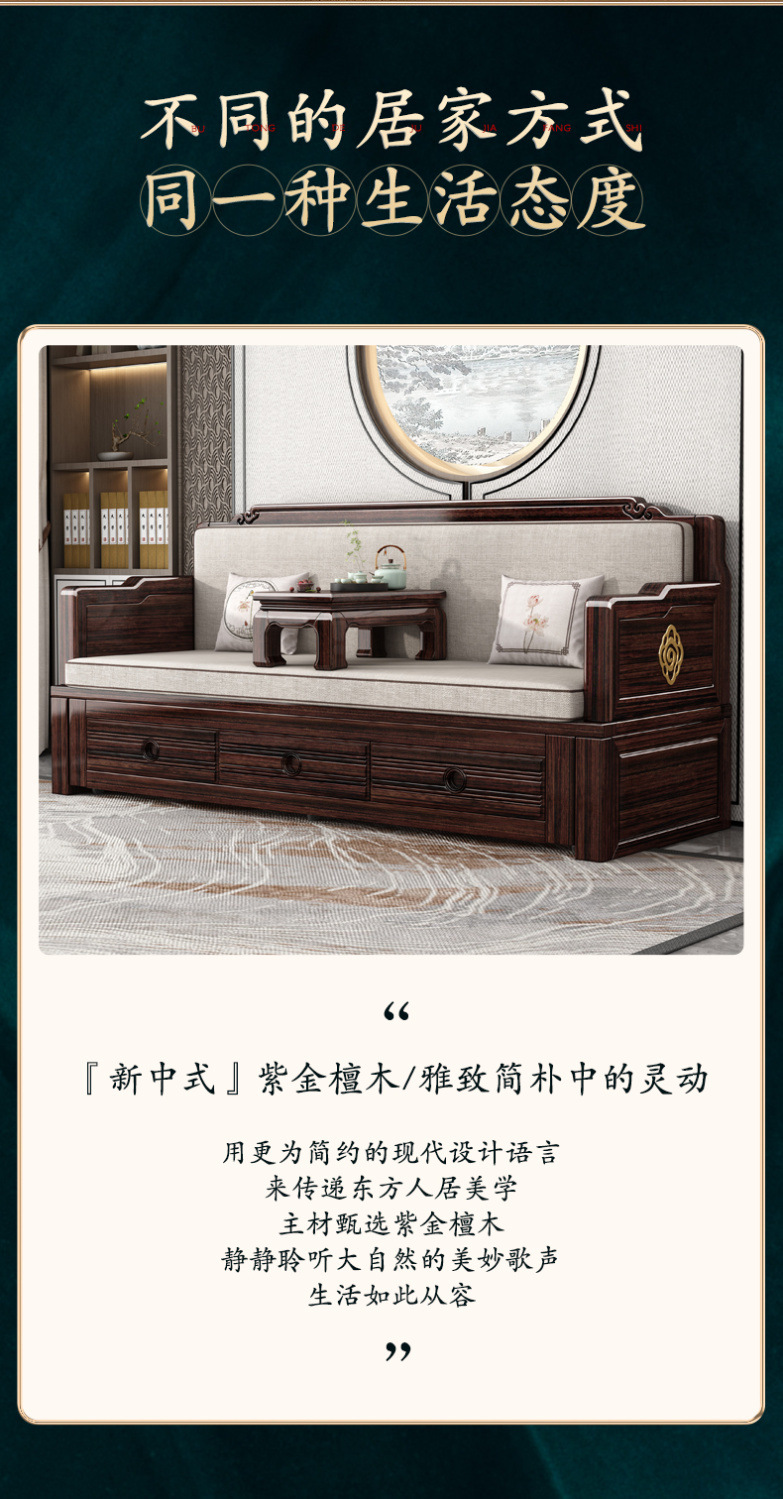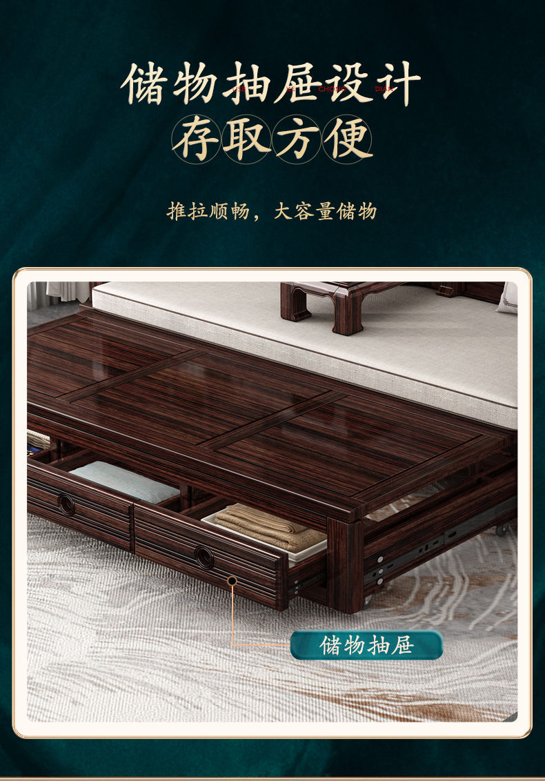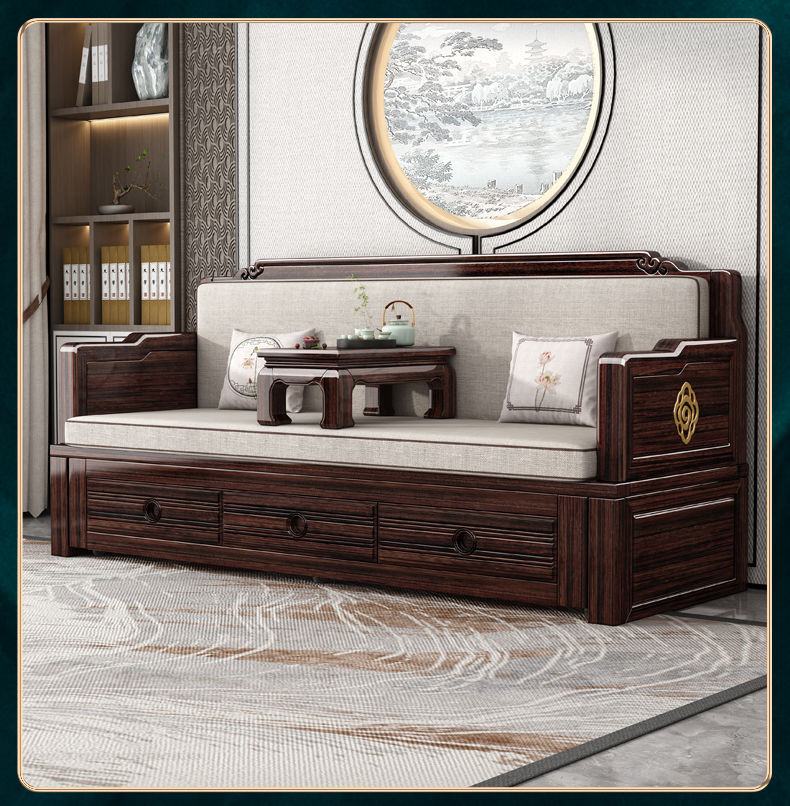 New Chinese style solid wood sofa bed high end sofa bed dual use small apartment retractable push pull purple gold sandalwood arhat bed