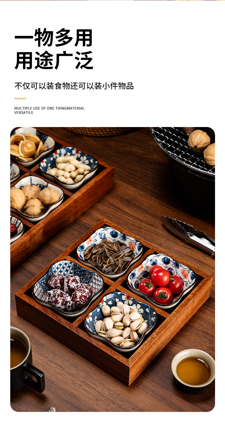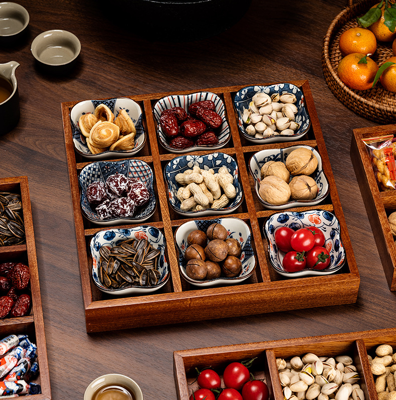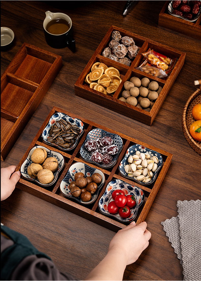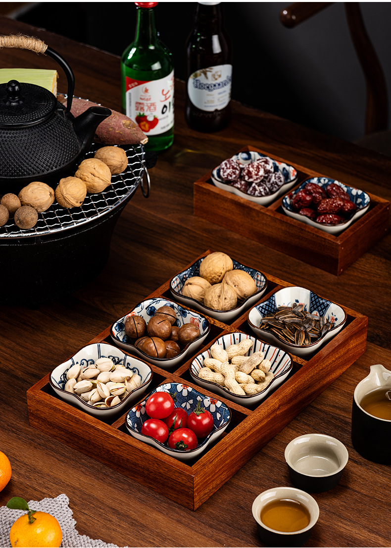 New Chinese style wooden tea tray Zen nut plate exquisite ceramic Japanese dried fruit box snack plate tea room fruit plate