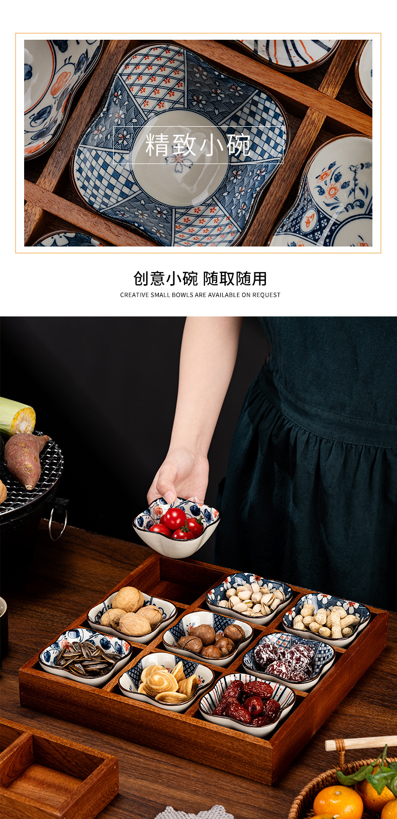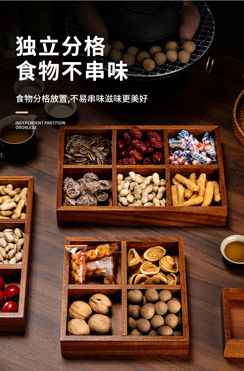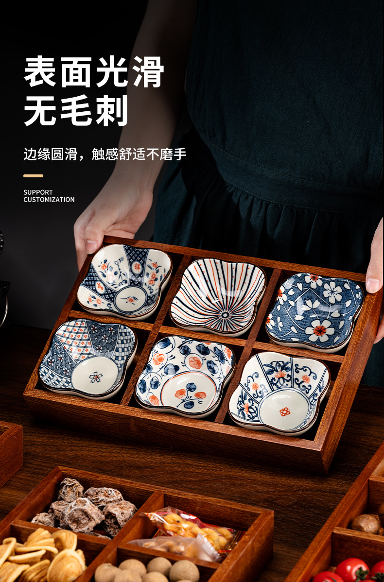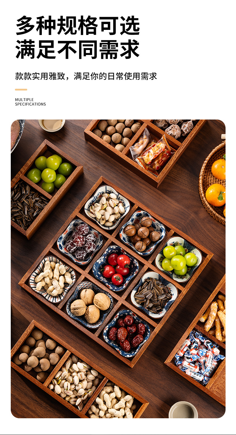 New Chinese style wooden tea tray Zen nut plate exquisite ceramic Japanese dried fruit box snack plate tea room fruit plate