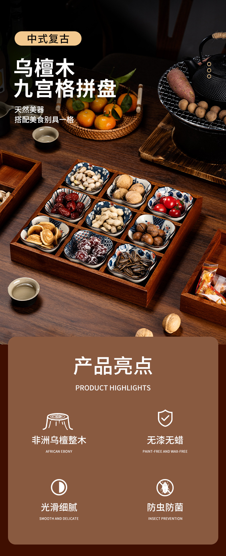 - Ebony four-grid ceramic set