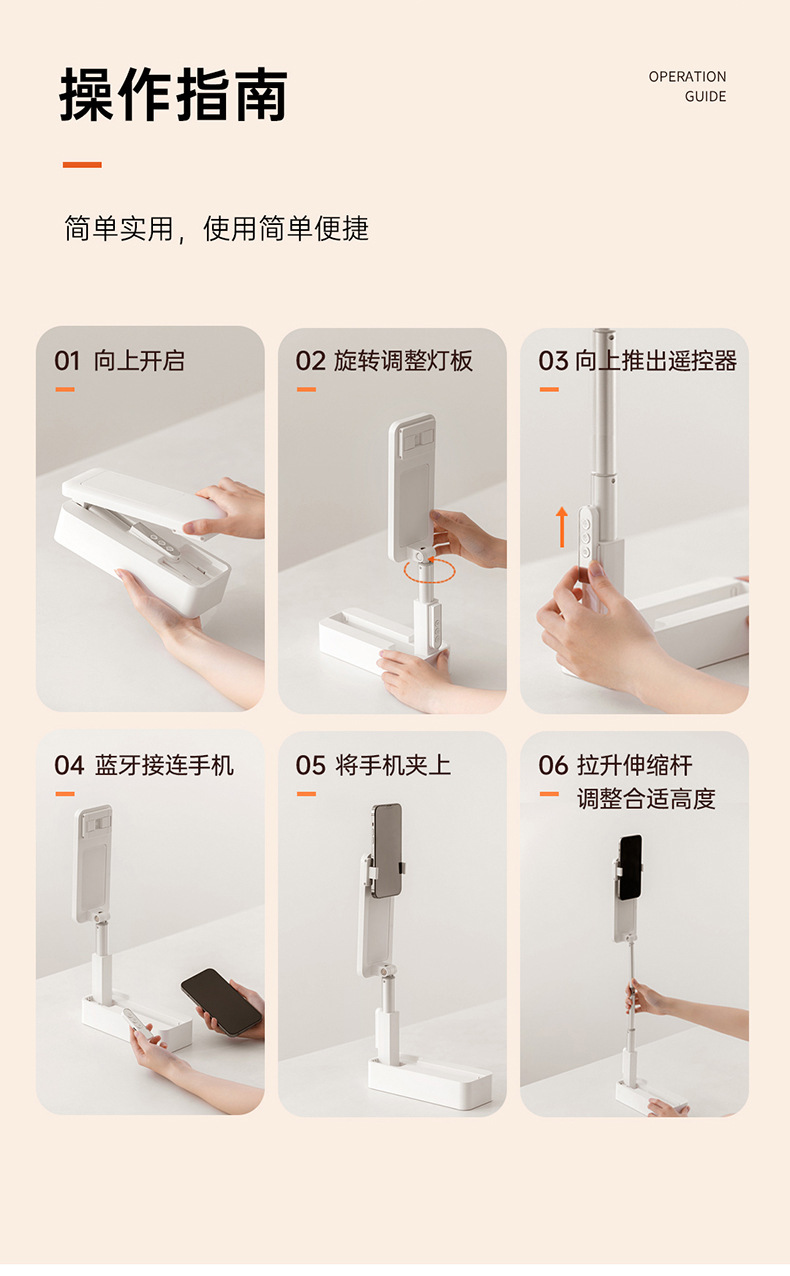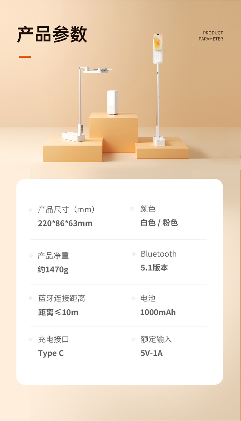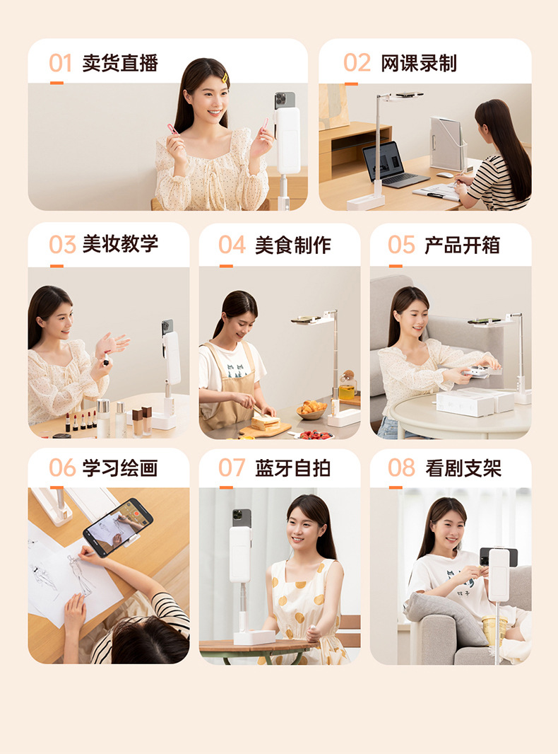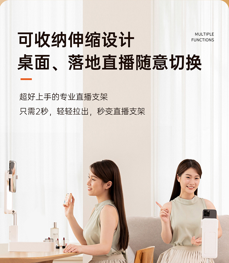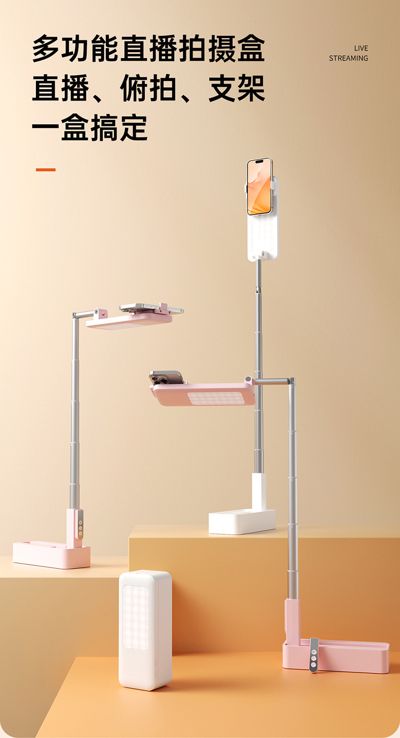 New Desktop mobile phone vertical shooting bracket Portable vertical shooting selfie vlog live broadcast artifact integrated bracket fill light