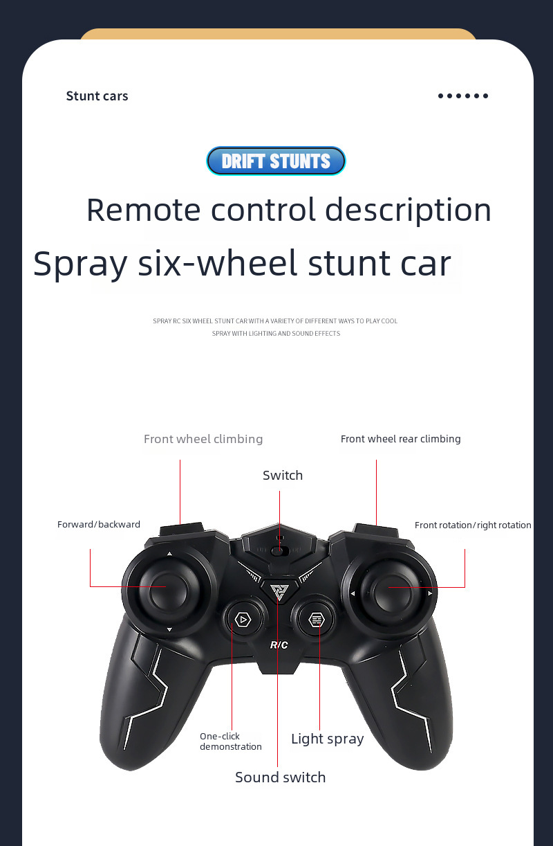New RC High Speed remote control car swing arm twist deformation car Electric children s toy spray drift six wheel stunt car